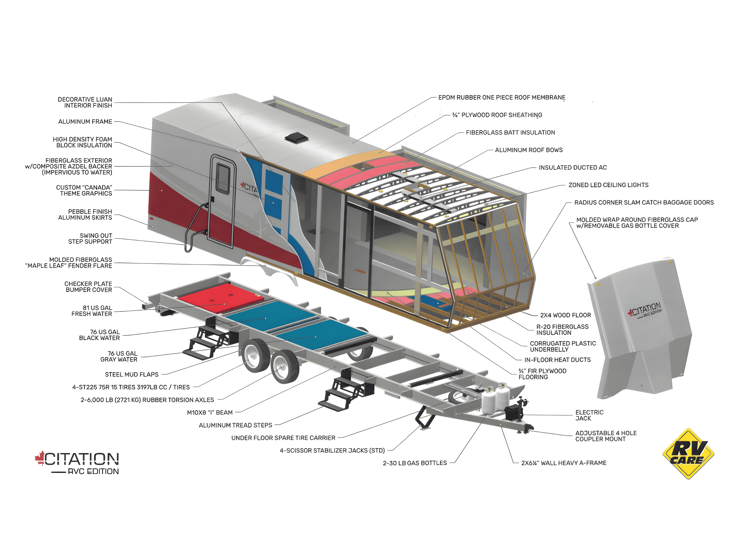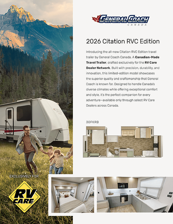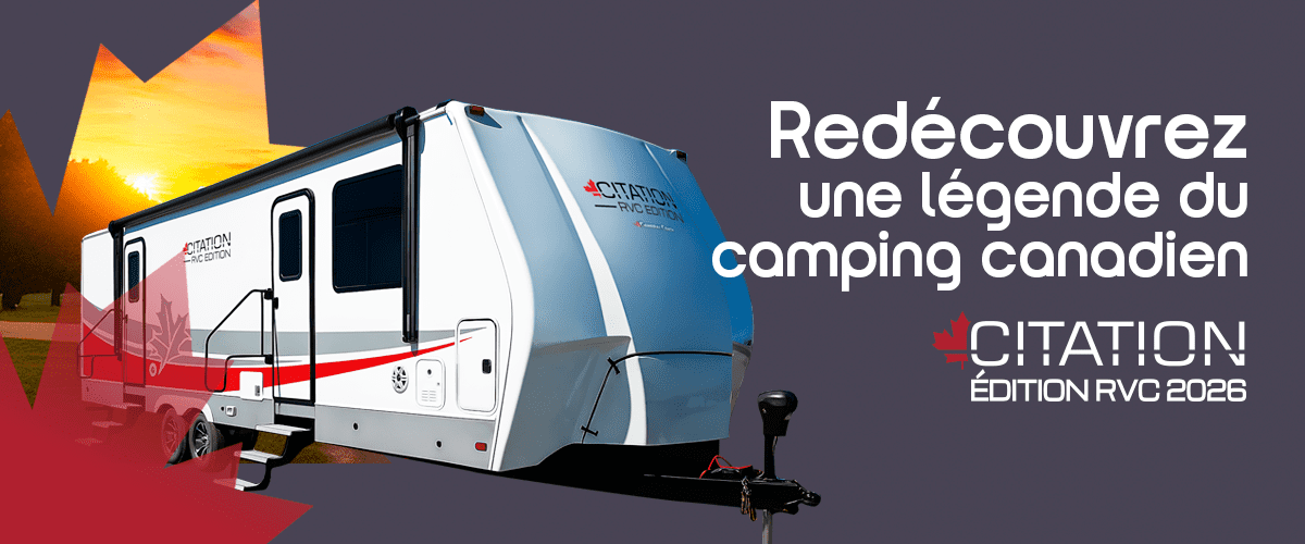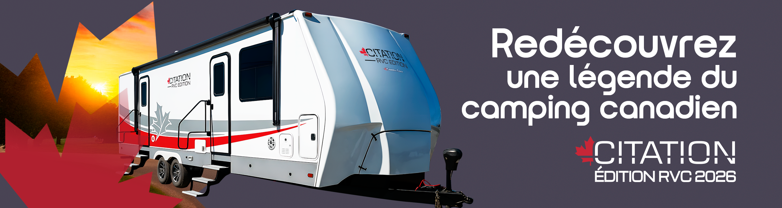 Redécouvrez une légende du camping canadien. Le tout nouveau Citation 2026 – Édition RVC fait renaître l’un des noms de roulottes les plus respectés au Canada, complètement réinventé pour les aventuriers d’aujourd’hui. Conçu avec expertise par General Coach à Hensall, en Ontario, et offert exclusivement chez certains concessionnaires RV Care, ce modèle en édition limitée allie design intemporel, ingénierie avancée et le confort du luxe moderne.