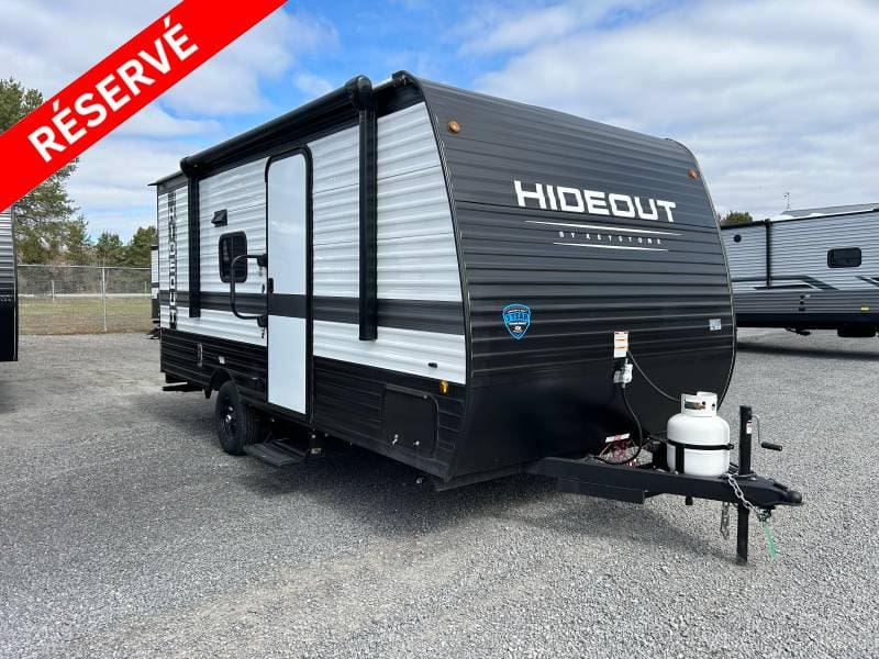 Découvrez le Hideout 175BH conçu pour vos aventures en famille. Il offre une banquette confortable un lit queen une douche et une toilette. Confort et commodité réunis pour des escapades mémorables!