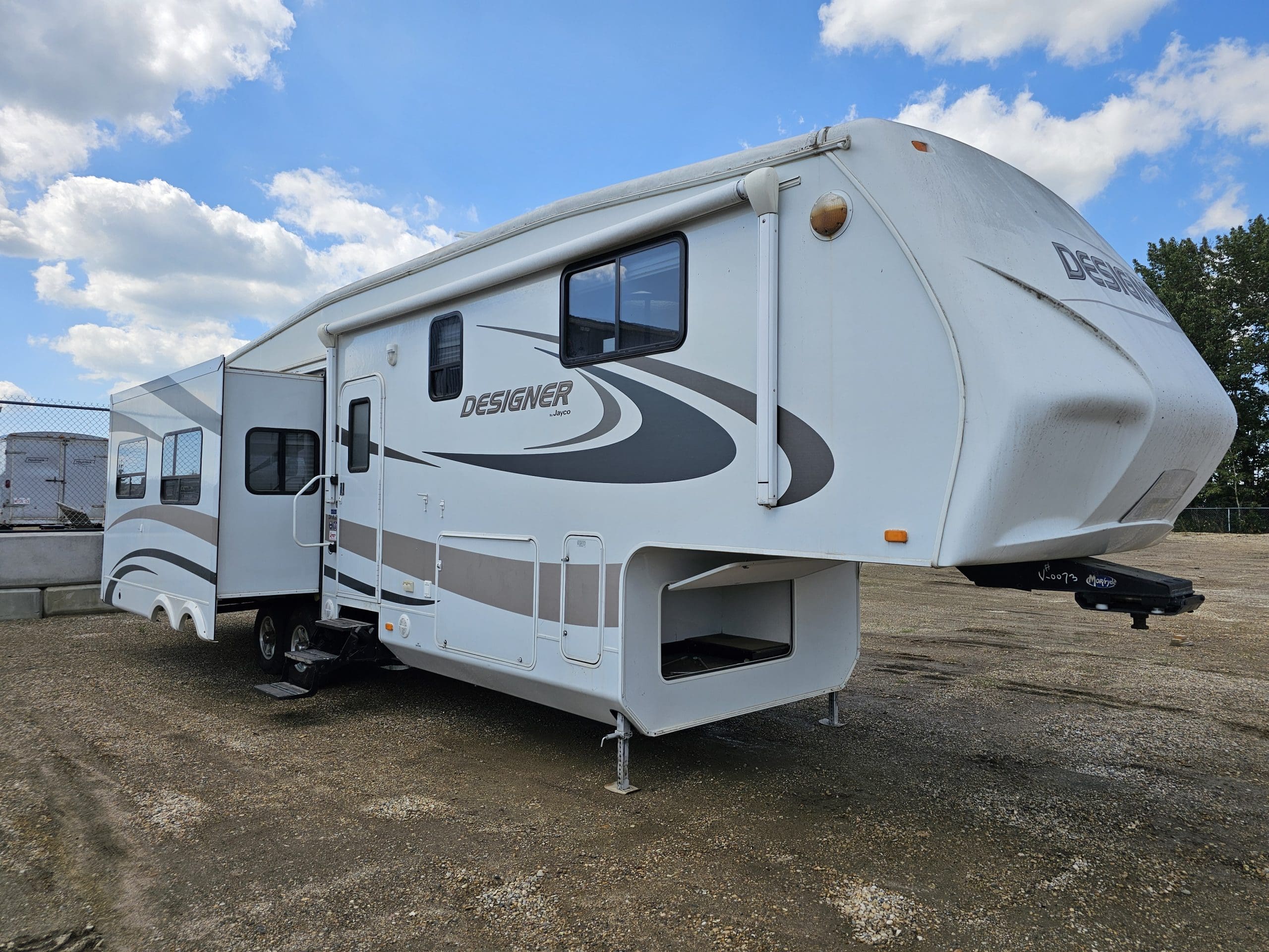 The 2010 Jayco Designer 34RLQS is a premium residential-style fifth wheel built for extended stays or full-time RV living. With exceptional build quality, four spacious slide-outs, and upscale finishes throughout, this luxury model delivers comfort, style, and functionality in every corner.