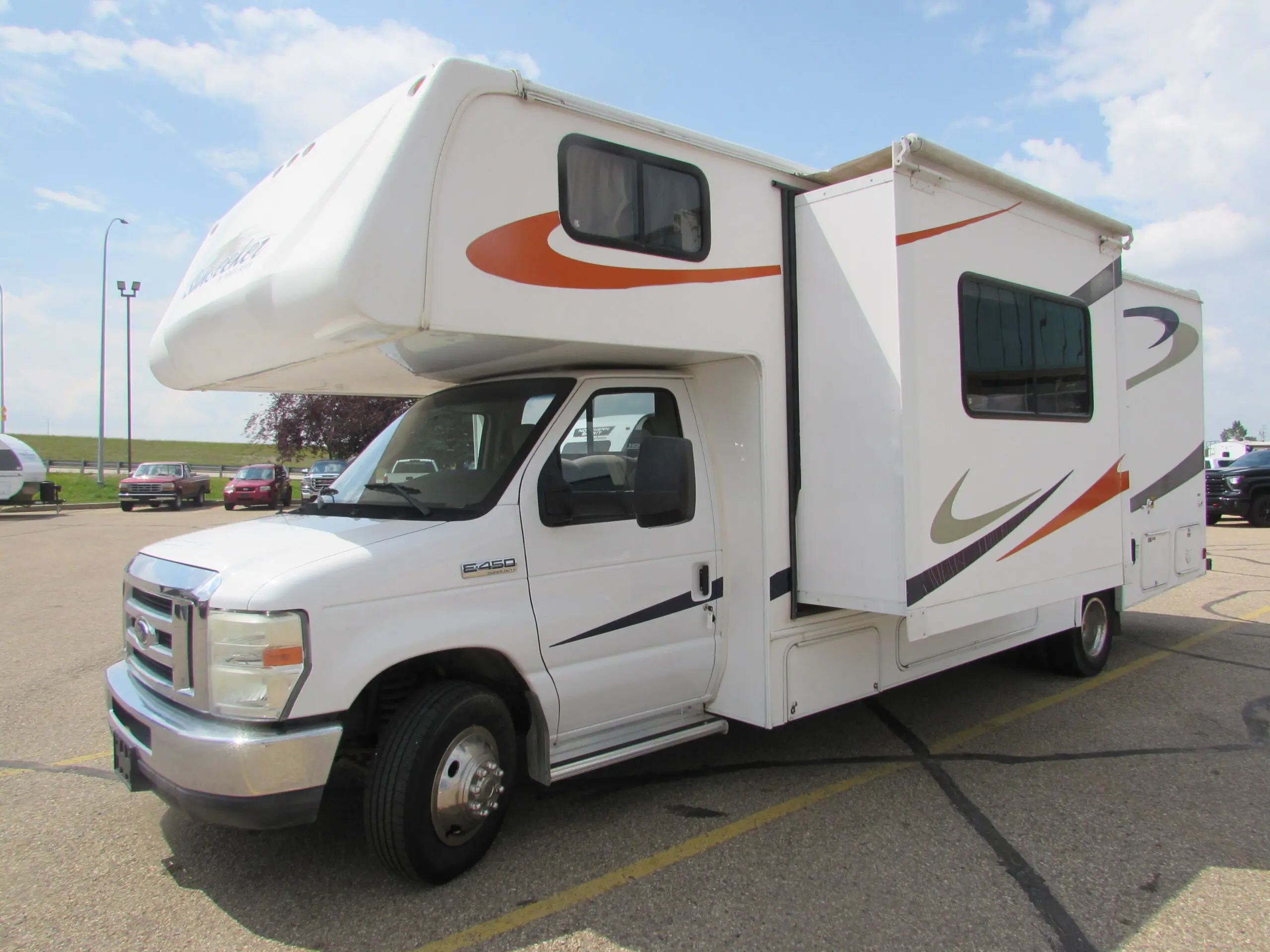 This 2011 Forest River Sunseeker 2690CD class C motor home for sale in Red Deer at Vellner Leisure Products has a very spacious floorplan. It features ample seating and sleeping for all. There is a rear queen corner bed and an amazing horse shoe dinette for meals or game night. Two single overhead beds that comes with a ladder is great for the kids. This unit is on a ford E 450 super duty chassis and has a triton V10 engine. Rear hitch for towing your boat or quads. This unit is all ready to hit the road. Please contact Vellner Leisure Products to inquire about this 2011 Forest River Sunseeker 2690CD class C motor home for sale in Red Deer.