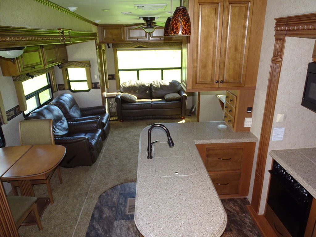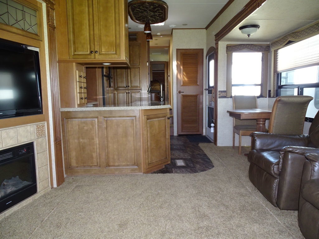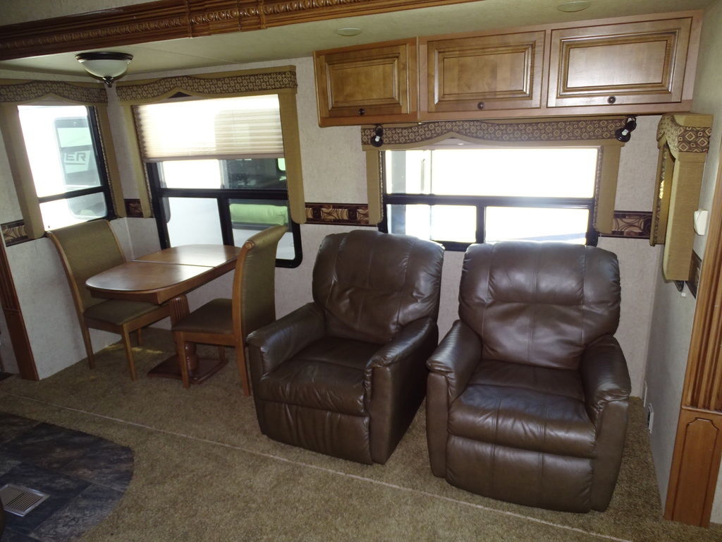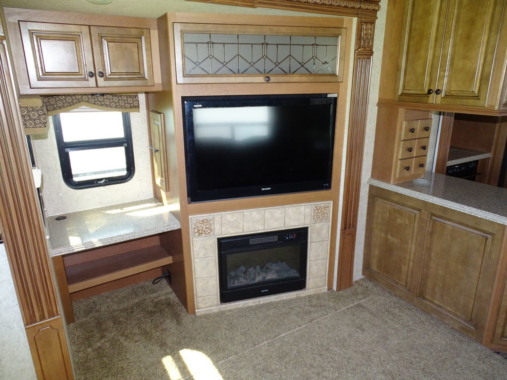 Features Include 4 Slides 2 A/C's Power Awning Gas/Electric Water Heater w/DSI 12 Cu. Ft. Refrigerator Arctic Package Trail-Aire Pin Box Power Leveling Jacks Partial Paint 16" Aluminum Wheels Washer/Dryer Prep DVD/Cd Home Theatre LCD TV Ceiling Fan Central Vac Pleated Shades Solid-Surface Countertops Free Standing Dinette Hide-A-Bed With Air Mattress Fireplace Outside Speakers Weight 13,374 Lns