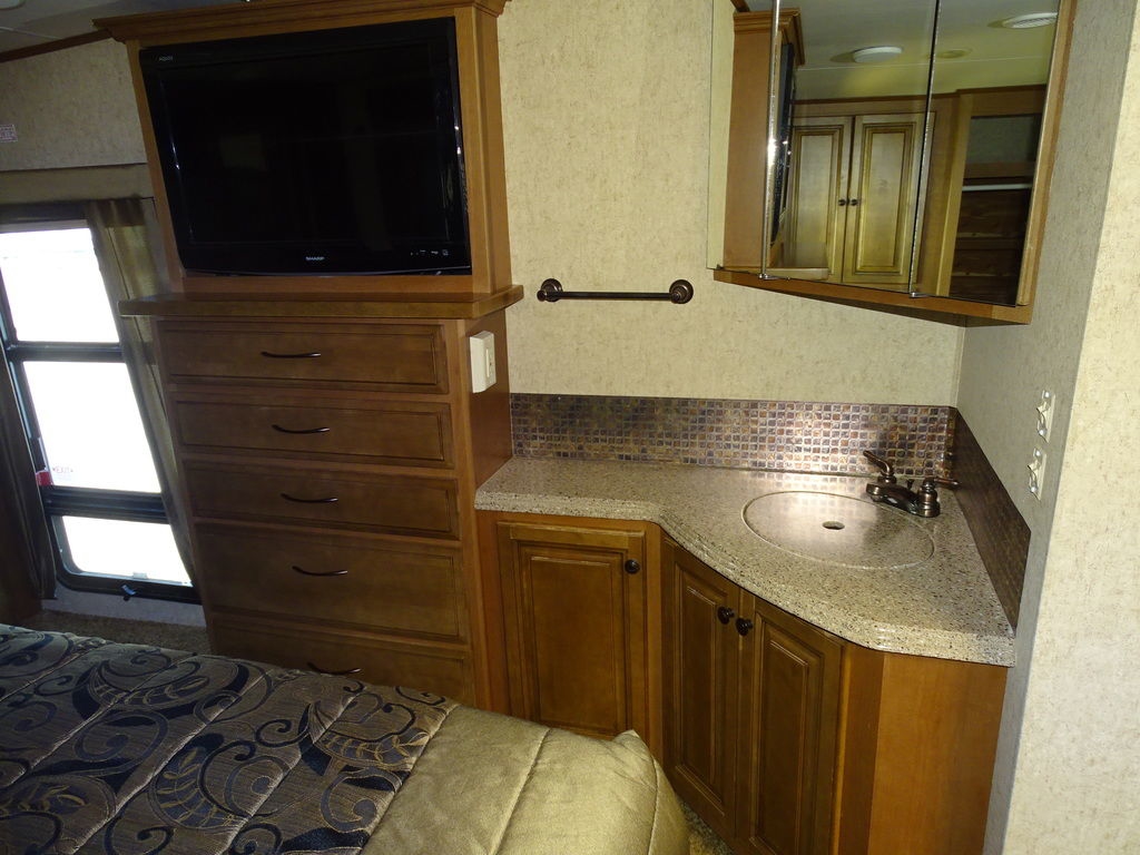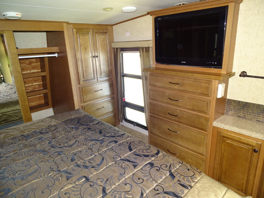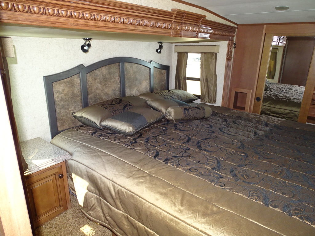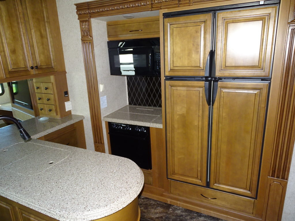 Features Include 4 Slides 2 A/C's Power Awning Gas/Electric Water Heater w/DSI 12 Cu. Ft. Refrigerator Arctic Package Trail-Aire Pin Box Power Leveling Jacks Partial Paint 16" Aluminum Wheels Washer/Dryer Prep DVD/Cd Home Theatre LCD TV Ceiling Fan Central Vac Pleated Shades Solid-Surface Countertops Free Standing Dinette Hide-A-Bed With Air Mattress Fireplace Outside Speakers Weight 13,374 Lns