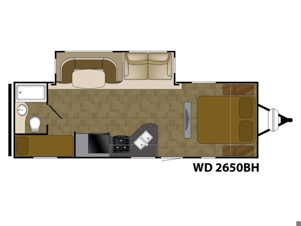 2014 Heartland Wilderness WD 2650 BHLight in weight, yet packed with innovation and value found only in Heartland Lightweight travel trailers. Perfect for seasonal trips with the whole family providing beautiful accommodations with endless sleeping, dining and storage possibilities all in a lightweight package that won`t break your bank. Features Include 1 Slide Ducted A/C Power Awning Gas/Electric Water Heater w/DSI 6 Cu. Ft. Refrigerator Enclosed Tanks Bunks Front Stabilizer Jacks Rear Stabilizer Jacks Diamond Plate Rock Guard Aluminum Wheels Microwave LCD TV Pleated Shades U-Shaped Dinette Outside Shower Weight 5865 Lbs.