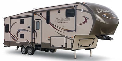 The Crusader 260RLD fifth wheel by Prime Time offers two slides and a rear living area. As you enter the fifth wheel you will be in the living and kitchen area. There are two lounge chairs in the rear of the fifth wheel. The side has a hide-a-bed and dinette.