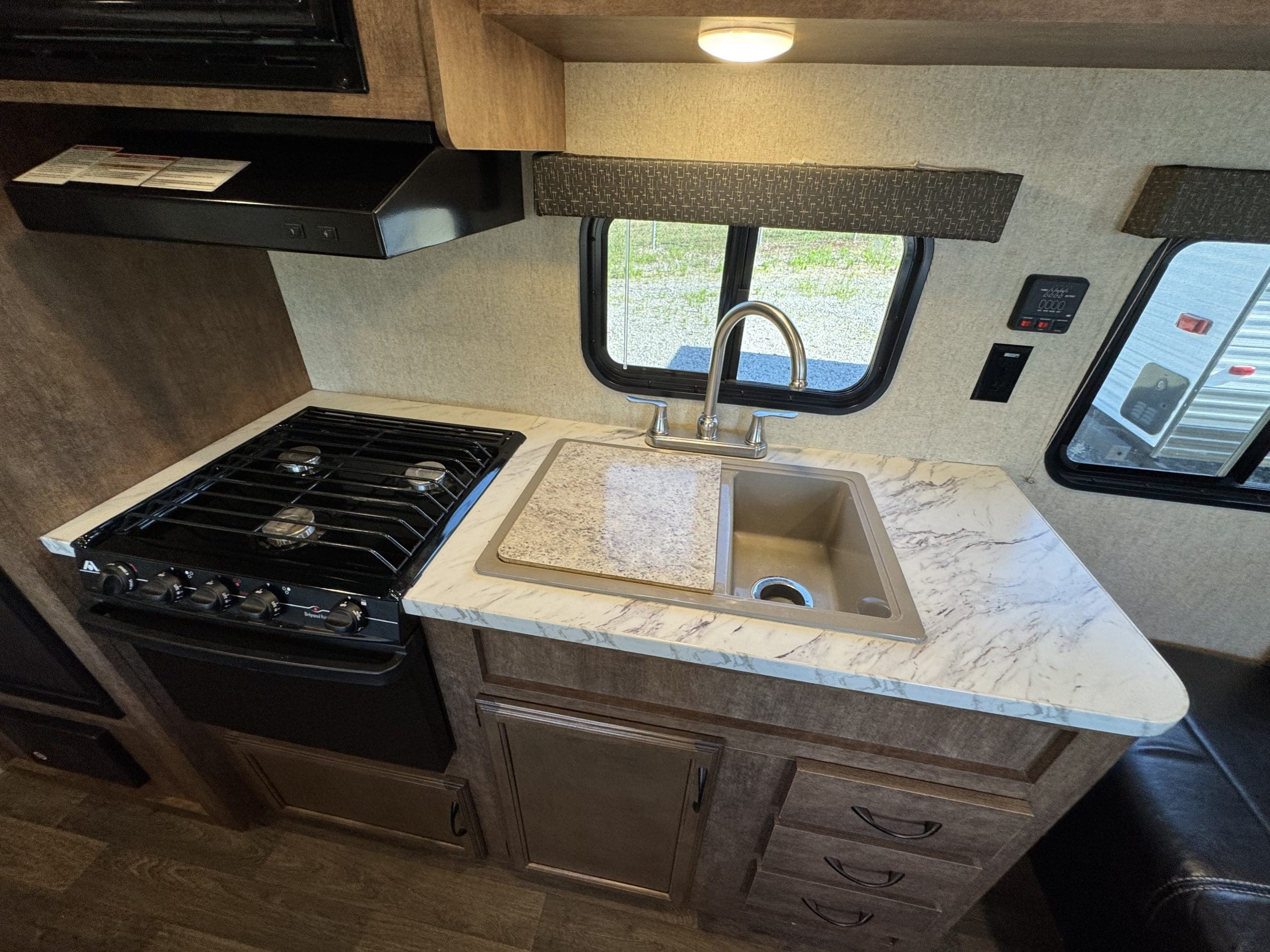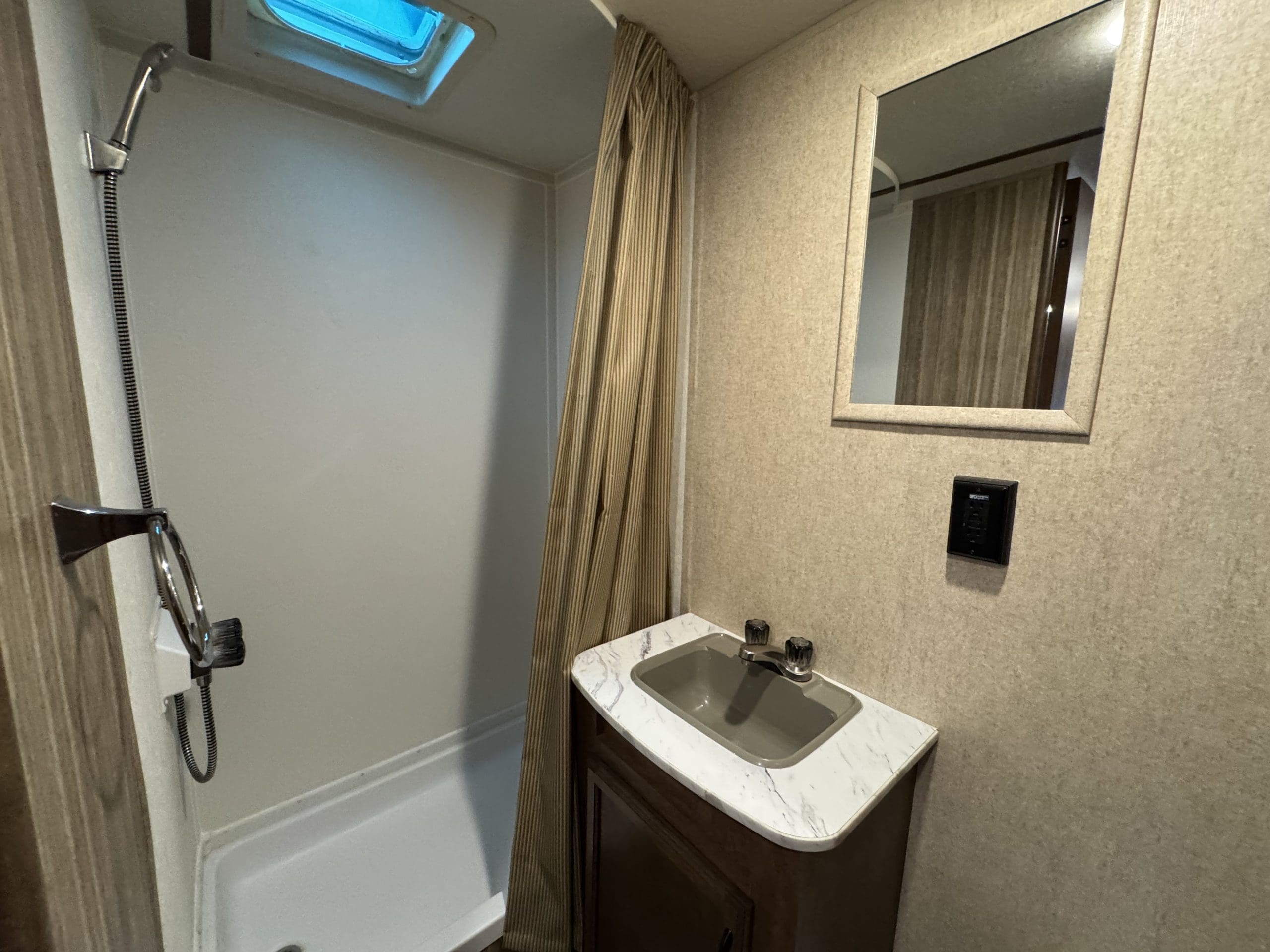 • Handy exterior amenities: electric awning, storage, speakers, outside shower