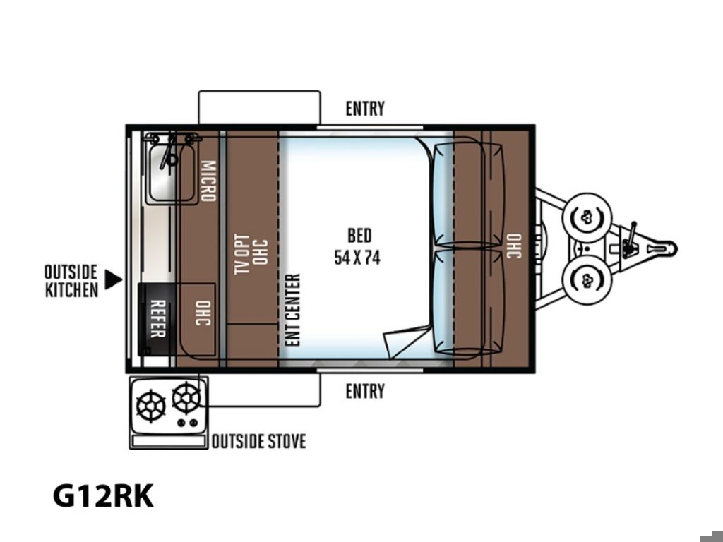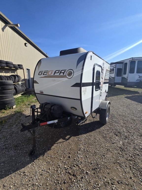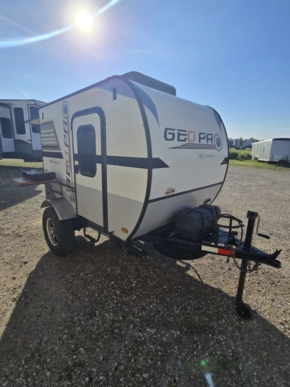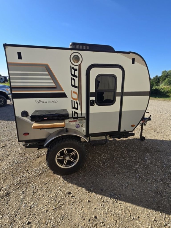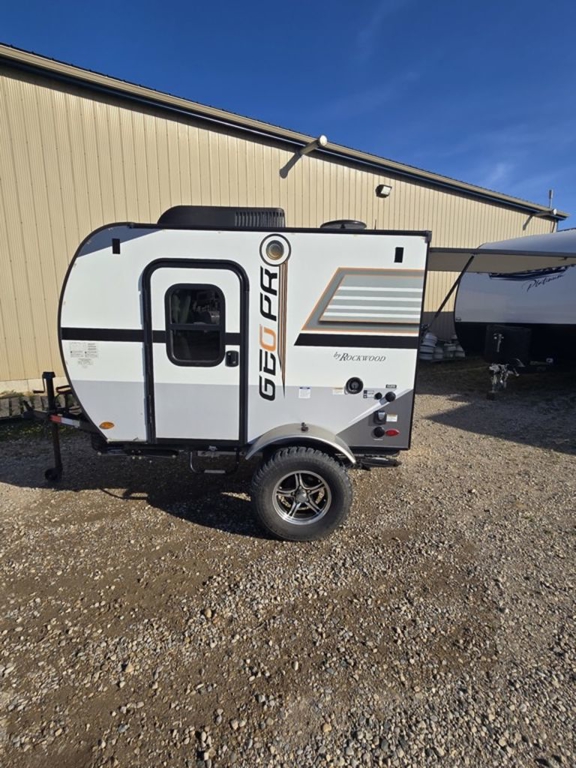 2018 Forest River Rockwood Geo Pro G12RK SALE PRICE – $13,400.00 WAS – $13,900.00 ONLY WEIGHS 1154LBS! WELL EQUIPPED INCLUDING ROOF MOUNTED AC Rockwood Geo Pro Travel TrailersThe Rockwood Geo Pro line of travel trailers are for those campers that value being environmentally conscious and have chosen to drive today’s more fuel efficient “crossover” vehicles and smaller SUVs. With floor plans that weigh within the towing capacity of these type of vehicles, the Geo Pro combines a traditional approach with modern amenities to enhance your camping experience.The Geo Pro has gone to the next level with its refreshing two tone fiberglass exterior, modern touches like LED exterior lights, available roof mount flexible solar panel system, and distinctive décors with Euro style cabinets. The Geo Pro…. an exciting new way to go camping with the vehicle you drive every day.Features may include:PopularTorsion Axles w/ Nev-R-Adjust BrakesManual Stabilizer JacksPolished Alloy WheelsLED Exterior LightsDouble 20 lb LP TanksManual Awning (N/A G12RK)Roof Mount Solar Prep (N/A G12RK)Maxx Air Ceiling Vent w/ FanFlat Euro Style Cabinet DoorsRoller Shades