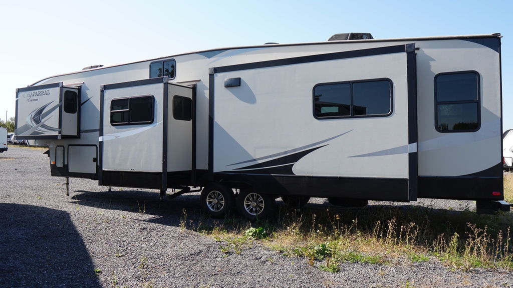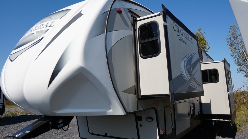 2019 Coachmen Chaparral 392MBLChaparral Mid-Profile Fifth Wheels have been the flagship fifth wheel at Coachmen RV for over a decade. Chaparral's are designed from the inside out for easy and adventurous travel. Roomy bedroom suites, enormous storage space and exciting aerodynamics and weights will make weekend or month long camping trips leaving you wanting for more! Chaparral Mid-Profiles come well equipped with residential features and elegant interiors that surround you with a home-like feel.Features may include:InteriorModern Entertainment Center Prepped For 50"-55" TV (Bracket Standard)Solid Hardwood Slide FasciaResidential Metal Curtain Rods & Finials W/ Dry Clean-Friendly CurtainsThomas Payne® Leather Touch Theatre Seating W/ Cup Holders (Where Applicable)Thomas Payne® Memory Foam Leather Touch Tri-Fold Sofa (Where Applicable)Residential, Non-Slip Beauflor® Vinyl Flooring W/ 7 Year Cold Crack WarrantyDual USB Charging Ports (Where Applicable)Ceiling Fan In Living Room (N/A 373MBRB) (Package)Energy Efficient LED Interior Lighting Used ThroughoutLED Motion Sensor Lights (Key Areas)AM/FM/CD/DVD Player W/ Bluetooth (Package)ExteriorTurn-Tec™ Engineering – #1 In Turning (Short Bed-Friendly) (Package)3M® UV Treated, Weather Resistant DecalsVacuum Bonded Gel Coat Exterior W/ Composite Backed Azdel® Panel80% Privacy Tint Safety Glass WindowsUV & Corrosion Resistant TPO Roof W/ 12 Year Warranty50" TV Brackets In Outside Kitchens (Where Applicable)Exterior TV Mounting Bracket (Where Applicable) (+ Secondary Bracket Where Applicable) (Package)Solar Panel Prep (Package)LP Quick Connect PortExterior Back-Up Camera Prep (Package)Electric Awning W/ LED Light Strip & One Hand Pitch Adjustment (Package)Exterior Marine Speakers W/ LED Light (Package)LED Entry Step LightsLED "Head Knocker Preventer" Under Bed Slide Lights (Where Applicable)Aluminum Entry Steps (4-Step 12" I-Beam, 3-Step Under 12" I-Beam) (Package)Electric Front Jacks (Package)Electric Rear Stabilizer Jacks (Package)Accessory Receiver Prep (Package)16” Radial Tires W/ Aluminum Rims (Package)Spare Tire (Package)