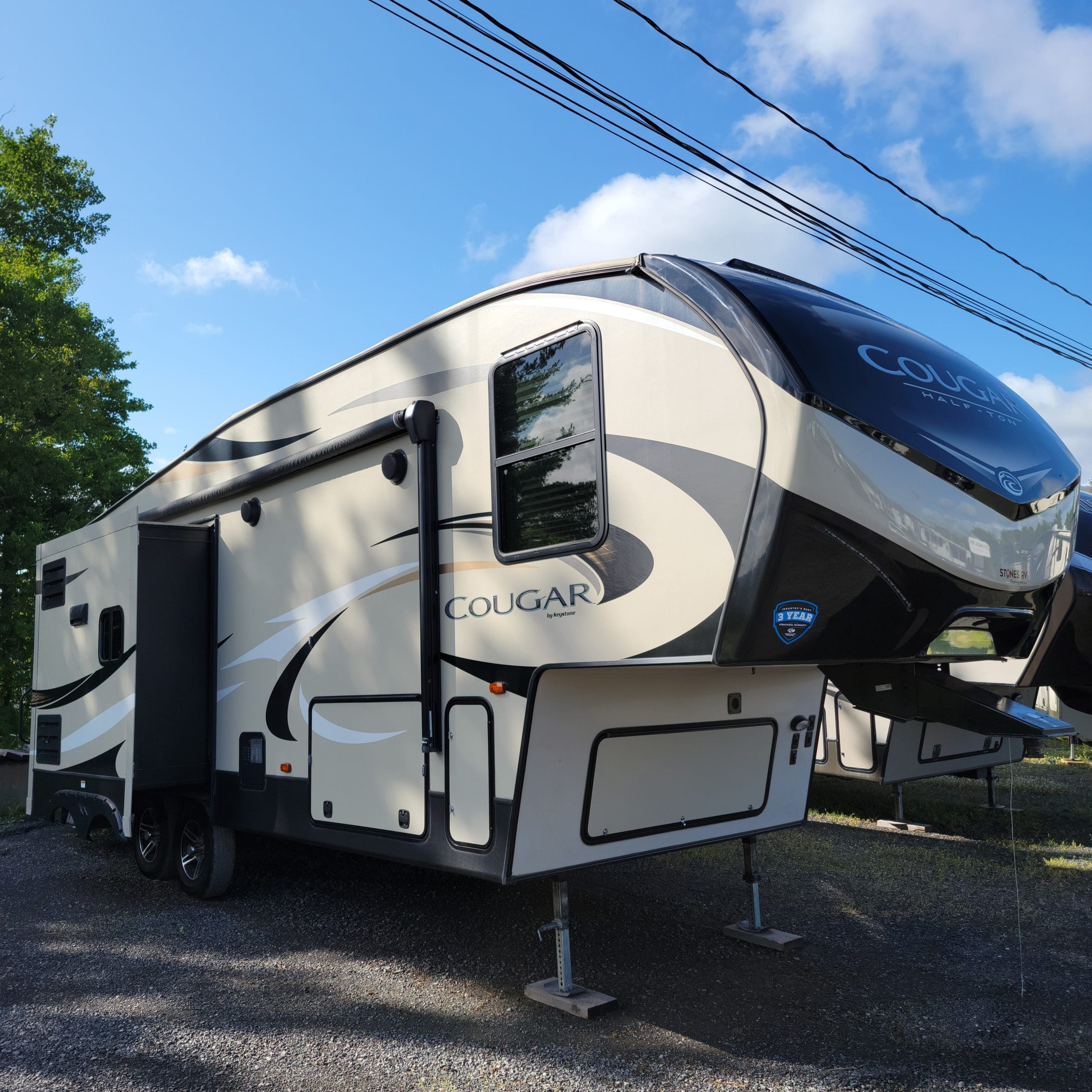 The 2019 Keystone Cougar Half-Ton 27RLS is designed for comfortable and convenient travel. It features a rear living layout with three slide-outs, providing ample living space, and is equipped with modern amenities and features for enjoyable camping experiences.