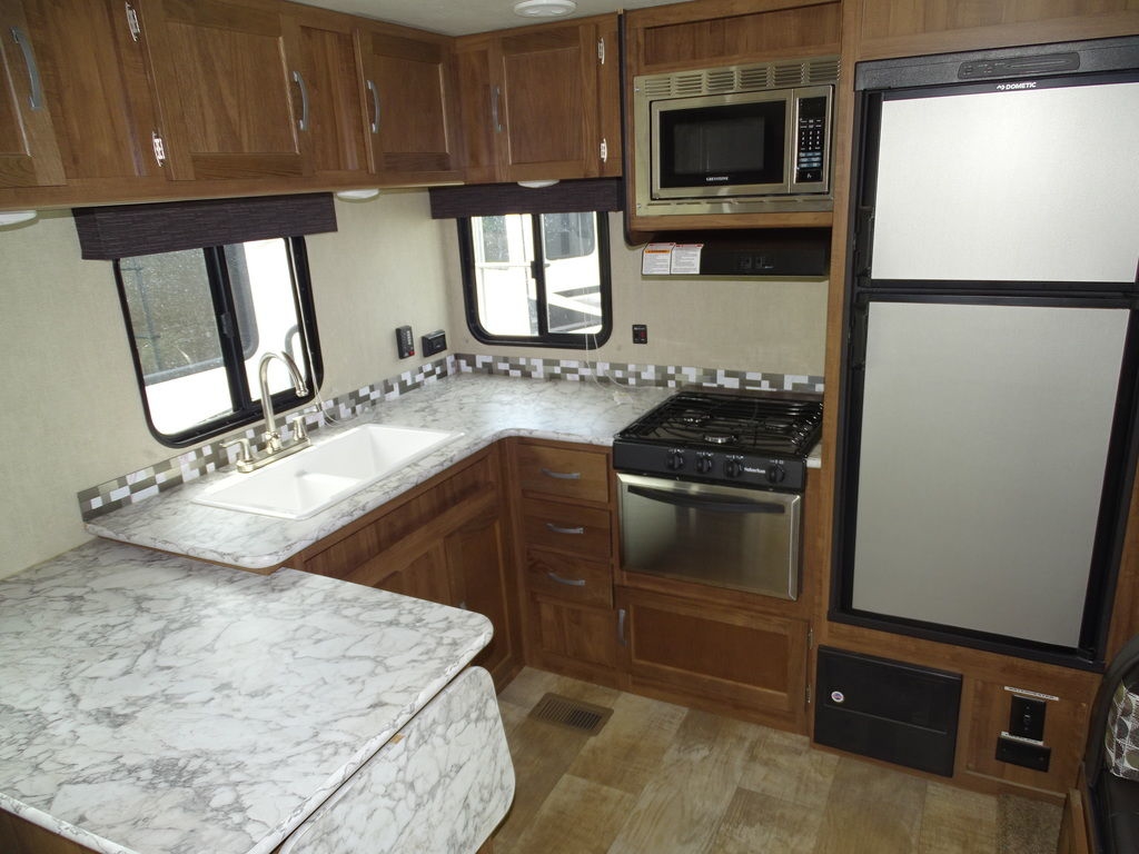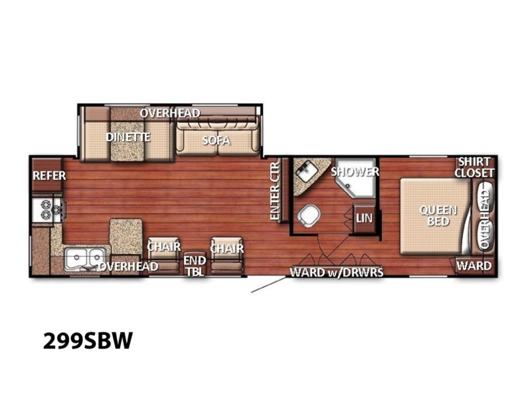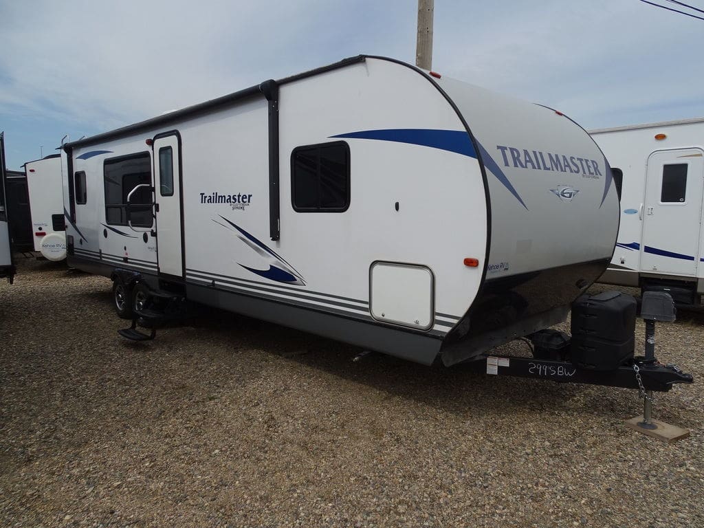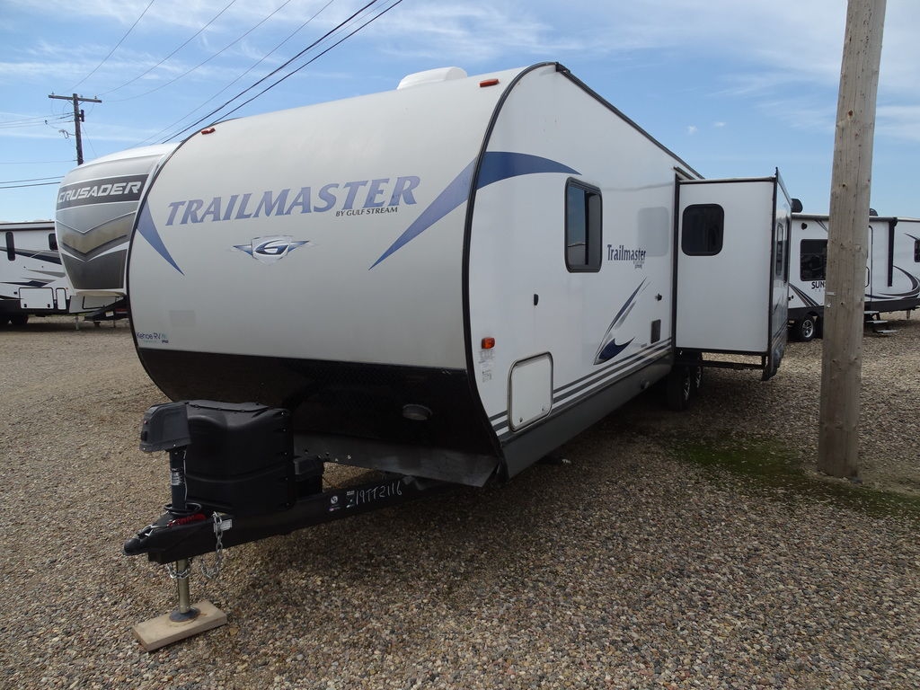 2019 Gulf Stream Trailmaster 299SBWTrailmaster – There's adventure at the end of the trailGo exploring! Find the beauty of nature. Enjoy the peaceful great outdoors. And take the comfort of home and technology of today with you, in a Trailmaster travel trailer. With a broad range of economical, high-value choices, ranging from 4,600 lbs to 10,500 lbs, in lengths from 25 ft to 41 ft in length, Trailmaster is your outpost for everything from a weekend getaway, or a summer-long vacation. All feature our time-honored and camper-proven Uni-Body Construction, top-quality construction, and budget-minded value.Features may include:Furnishings & DecorMaple Cabinetry w/Solid Wood Doors & DrawersPrivacy Bedroom DoorsHi-Performance Wood Grain Vinyl FlooringScald and Stain-Resistant Laminated CountertopsFlip-Up Queen Bed w/BedspreadWall MirrorHeating, Cooling, & Plumbing30 lb. LP Bottles w/Auto Change & EZ Access Cover (20 lb. in SE Models)Ducted 13,500 BTU Roof Air Conditioner (Optional in SE Models)25,000 or 30,000 BTU Gas Furnace w/Insulated In-Floor Heat Ducts6 Gal Quick Recovery Gas DSI Water HeaterMonitor Panel for Tank LevelsWater Tank and Pump (N/A in Lodge Series)Water Heater By-Pass ValveElectrical & SafetyCable TV Hook-Up30 Amp Service w/45 Amp Converter w/ChargerTV Antenna w/Signal Booster12V Antenna Ready JackWall Mounted Light SwitchesWall Mounted Fire ExtinguisherSmoke Detector, Combo CO/LP DectectorLights for Patio, LP Tanks, and HitchSafety ChainsKitchen & Bath3-Burner Range w/Superburner & Oven (Opt. SE)Power Range Hood w/Light6.0 Cu. Ft. Double Door Refrigerator (Opt. on SE)Carousel Microwave OvenFull Extension Roller Bearing Drawer Guides60/40 Kitchen SinkWood Medicine CabinetShower Skylight and Shower CurtainPower Bath VentFoot Flush ToiletGlass Door for Neo-Angle/Corner ShowerWindows & DoorsRadius Safety Glass WindowsMini-Blinds throughoutWindow TreatmentsRadius Entry Door w/Window & Deadbolt LockExteriorColor-Coordinated Pull-Down AwningRadial Tires (Optional on SE Models)Lighted Pass-Thru Storage AreaEZ-Fold Double or Triple StepsRadius Skirt Metal & Matching Fender Skirts (N/A in SE Models)Diamond Plate Lower Front (Opt. on SE Models)Key Construction DetailsOne-Piece Seamless Roof w/12 year Warranty2” x 41/2” Truss-Style Crowned Roof SystemSidewalls, Ceiling and Floor screwed, glued & tied together with steel straps for unmatched Uni-Body strength & resilience2” x 6”Laminated Slide Room Header reinforced with solid 1/4” x 4“ steel plate.5/8” Floor Decking screwed and glued in placeHand-cut and glued fiberglass insulationPowder-coated Steel I-Beam Frame w/welded Outriggers 1 Slide Ducted A/C Power Awning Gas/Electric Water Heater w/DSI 6 Cu. Ft. Refrigerator Arctic Package Power Front Tongue Jack Front Stabilizer Jacks Rear Stabilizer Jacks Diamond Plate Rock Guard Aluminum Wheels Microwave DVD/CD Home Theatre Pleated Shades Trifold Sofa Fireplace O