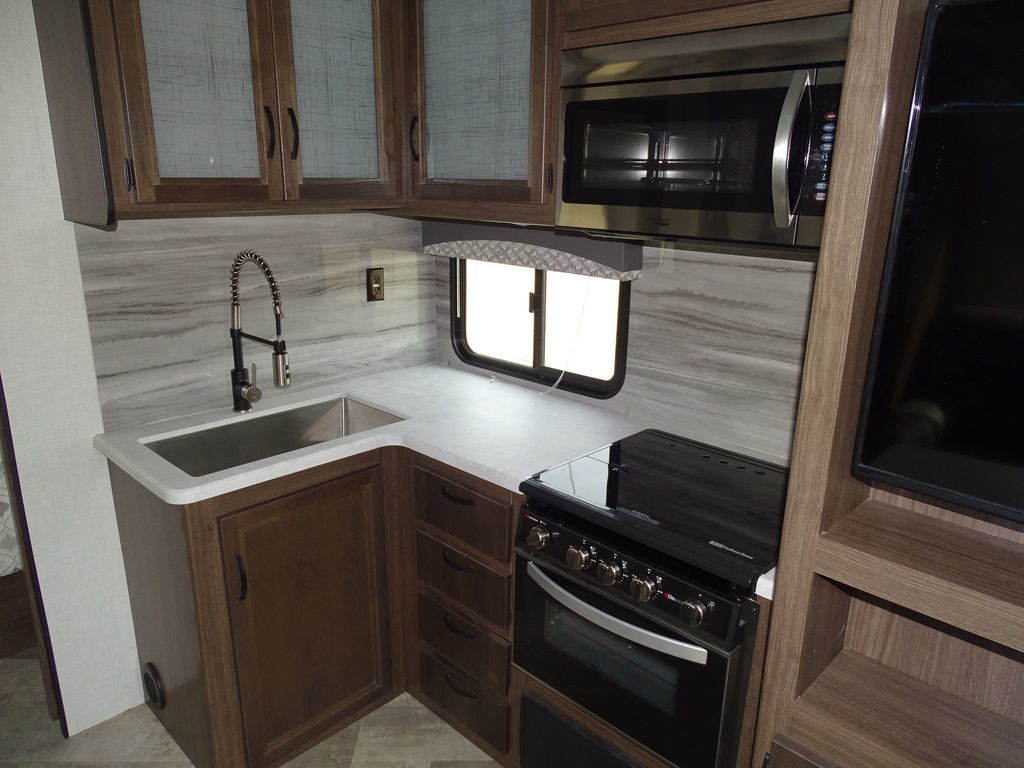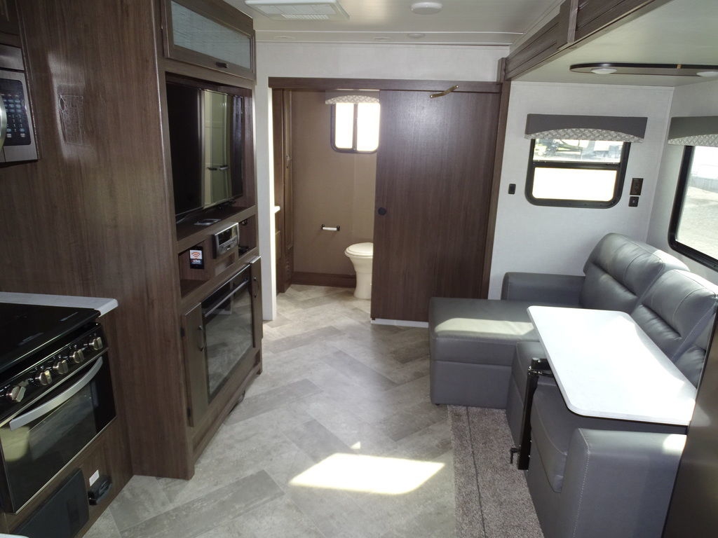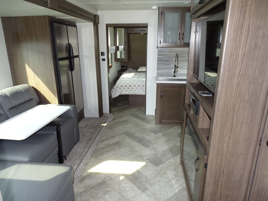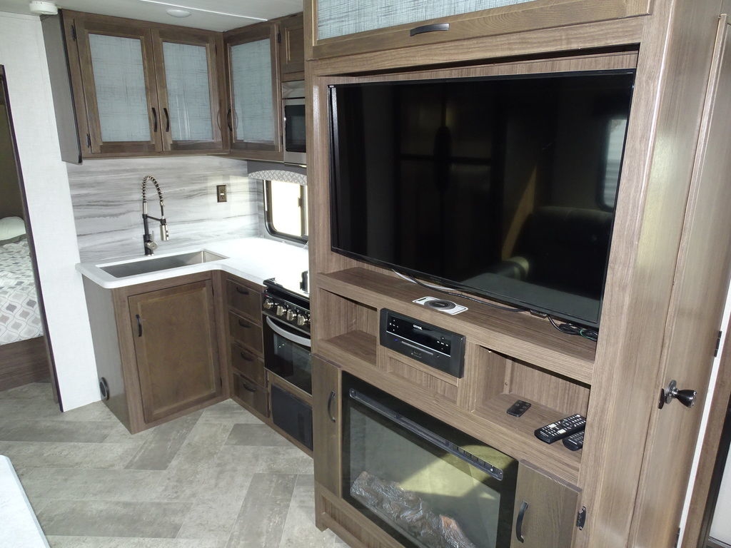 Features Include 1 Slide Ducted AC Power Awning Gas/Electric Water Heater w/DSI 12 Cu. Ft. Refrigerator Arctic Package Power Front Tongue Jack Front Power Stabilizer Jacks Rear Power Stabilizer Jacks Diamond Plate Rock Guard Aluminum Wheels Microwave DVD/Cd Home Theatre LED TV LED Lighting Pleated Shades Trifold Sofa Fireplace Outside Shower Weight 6600 Lbs.