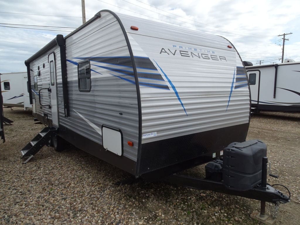 2021 Prime Time Avenger 29RSLYOUR JOURNEY BEGINS HERETo guarantee that Avenger provides true customer satisfaction, our engineers carefully examined every component, every small detail, and every process that went into Avengers creation. It is important to offer industry-leading beauty, so beautiful hand-crafted doors were paired with premium fabrics, flooring, and countertops for a luxurious appearance. Features and design elements that are considered to be “Best In Class” and rarely found on the competitions are used to fully maximize customer enjoyment. Demanding testing standards and innovative construction technique like EVERLAST® were developed and used to ensure long-term quality and durability in your Avenger.If “Your Journey Begins Here”, Avenger is sure to please.Features may include:InteriorOversized MAX Slide (Where Available)Massive 87” U-Shaped Dinette in MAX SlidesLarge Fully Vented Windows ThroughoutPleated Black Out Night Shades in LivingRoom and Dining AreaDesigner Window TreatmentsPredrilled and Screwed CabinetryResidential Extended Ball Bearing Drawer GuidesLED Interior LightingJacknife Sofa w/LED Cup Holders and USB Charging Ports (Select Models)USB Ports at BunksSeamless Carefree Congoleum FlooringExteriorAerodynamic Radius Front ProfileLED Lit Power Awning“Solid Stance” Fold Down Steps(2) 20 lb. LP Bottles4 Stabilizer JacksDiamond Plate Front Rock GuardRadius Entry Doors with WindowsFolding Grab Handle at Main EntryBottle Opener at Main EntrySolar PrepBack Up Camera PrepExtended Drip SpoutsSpare TireOutdoor Kitchen (Select Models)Radial TiresHot/Cold ShowerBlue LED Outside SpeakersBlack Frame Radius WindowsDOT Approved Safety Glass WindowsFully Vented Windows ThroughoutDoggy D-RingCity Water FillGravity Fresh tank Fill Features Include 1 Slide Ducted A/C Power Awning Gas/Electric Water Heater w/DSI 8 Cu. Ft. Refrigerator Enclosed Tanks Front Stabilizer Jacks Rear Stabilizer Jacks Diamond Plate Rock Guard Microwave Home Theatre Pleated Shades U-Shaped Dinette Outside Shower Solar Panel Weight 5649 Lbs.