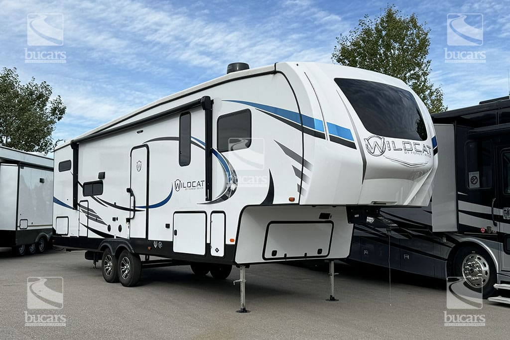 Are you looking for a luxurious and spacious 5th wheel trailer that can comfortably accommodate your entire family and friends during your travels? Look no further than this pre-owned 2021 Forest River Wildcat WCF297BH! This modern and well-appointed fifth wheel trailer is packed with all the features and amenities you need for a comfortable and unforgettable trip. with power stabilizing jacks and automatic leveling, setting up camp has never been easier or more hassle-free. Inside, you’ll be greeted with a host of features designed to make your life on the road as comfortable and convenient as possible. There’s even an exterior fridge and speakers, perfect for outdoor entertaining. When it’s time to turn in for the night, you’ll appreciate the queen bed in the master bedroom, as well as the comfortable bunk beds and fold-out bed that can accommodate up to 10 people. So why wait? Start planning your next adventure in the 2021 Forest River Wildcat WCF297BH 5th wheel trailer today! For additional information on this bright and modern fifth wheel, please call or text our main line at 403-207-1666, or come down and see this pre-owned Wildcat for yourself at our Balzac lot just north of Calgary. For after-hour inquiries, please text us at 403-207-1666.