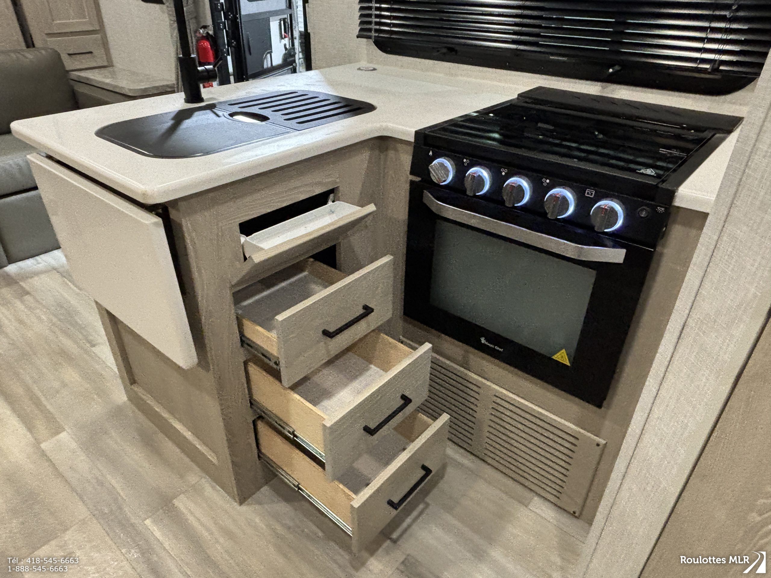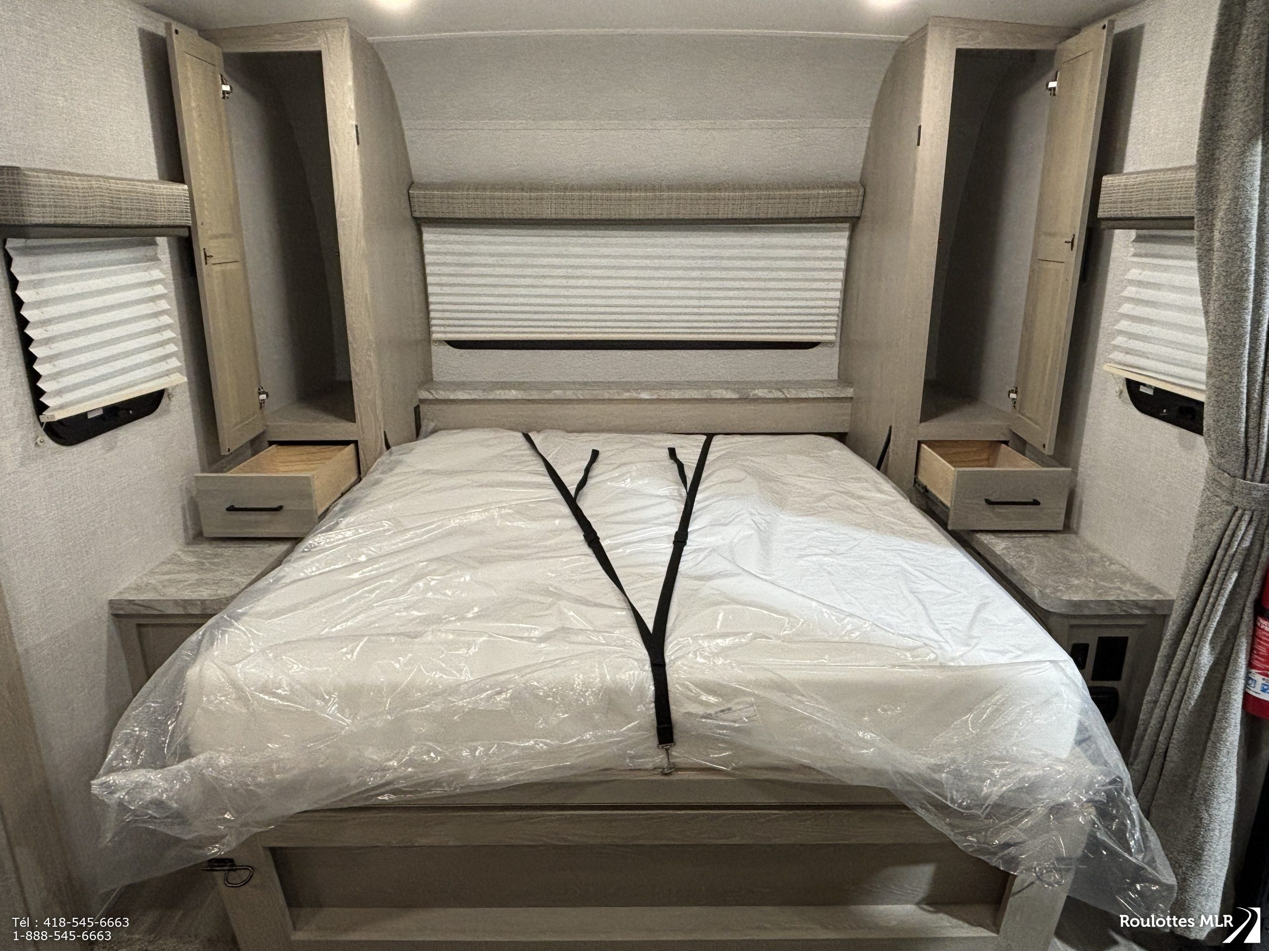Superbe petite roulotte de qualité idéale pour couple. Lit escamotable, extension avec banquette en ‘U’,matelas neuf, réfrigérateur 3 voies, belle salle de bain, cap avant moulé, stabilisateurs électriques, auvent d’annexe, et bien plus.
