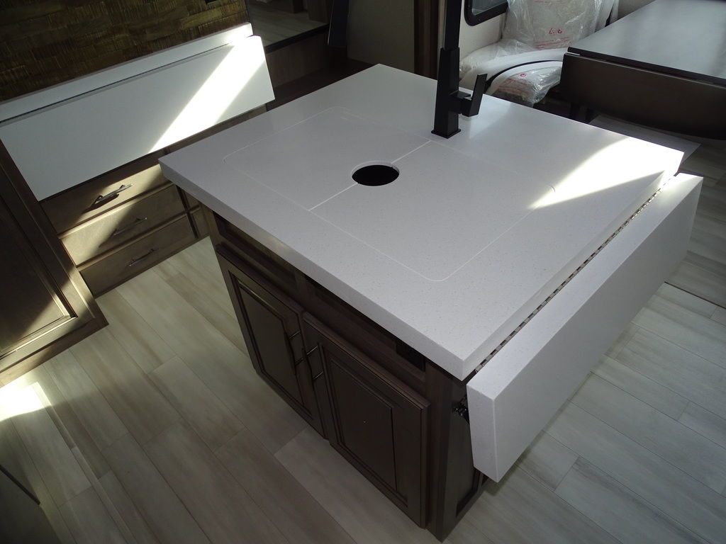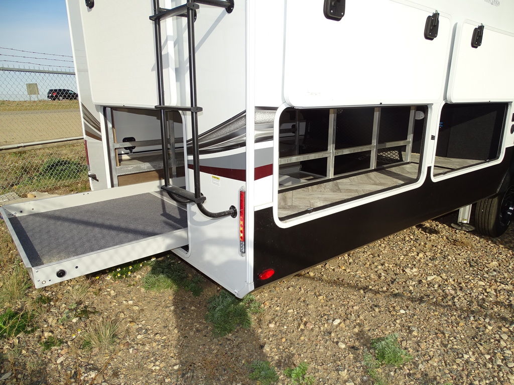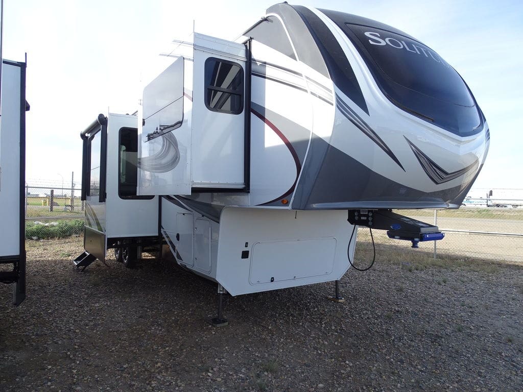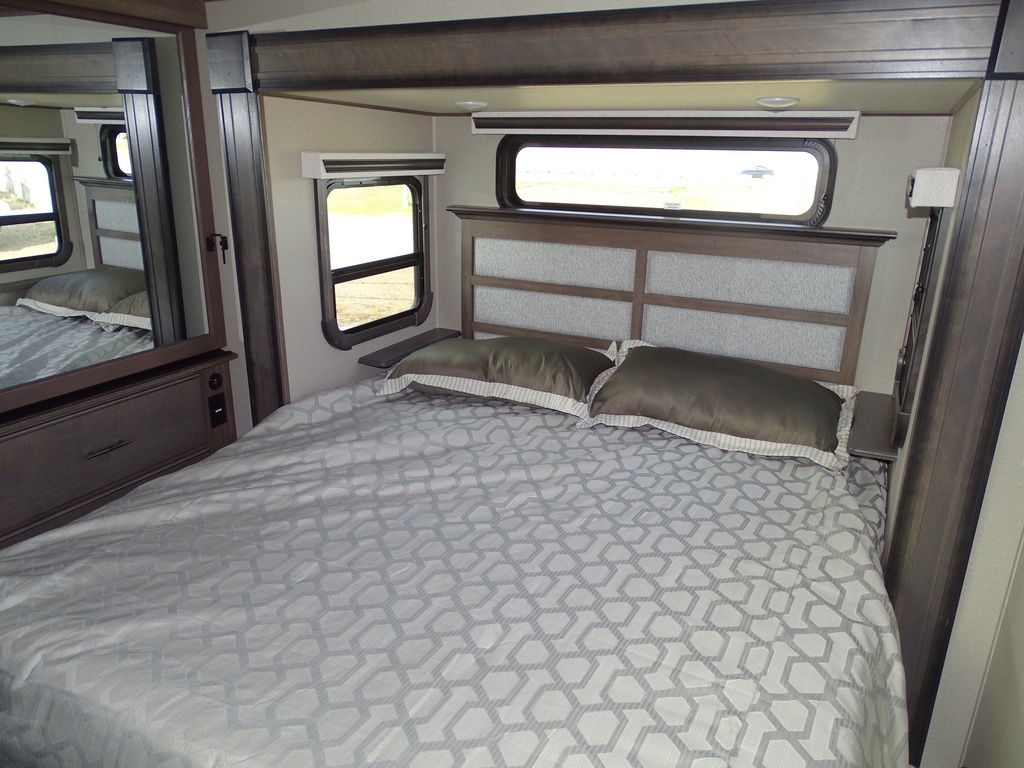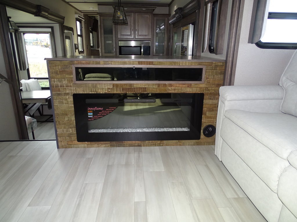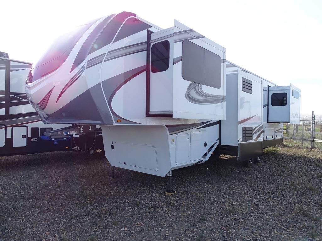 Features Include 5 Slides 2 AC's 2 Power Awnings 10 Gal. Water Heater w/DSI 18 Cu. Ft. Refrigerator Dual Pane Windows Arctic Package Mor-Ryde Suspension Mor-Ryde Pin Box Power Leveling Jacks 17.5 Aluminum Rims Washer Dryer Prep Solid-Surface Countertops Free Standing Dinette Microwave DVD/CD Home Theatre LED TV Fantastic Fan LED Lighting Central Vac Roller Shades 2 Trifold Sofas Fireplace Outside Shower Outside Speakers Weight 14620 Lbs. Unit still has factory warranty