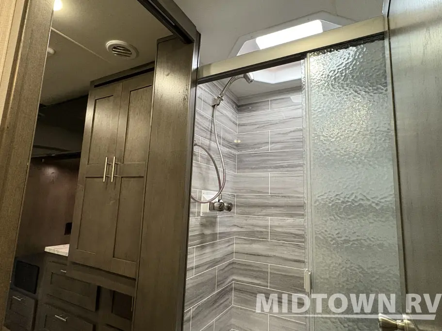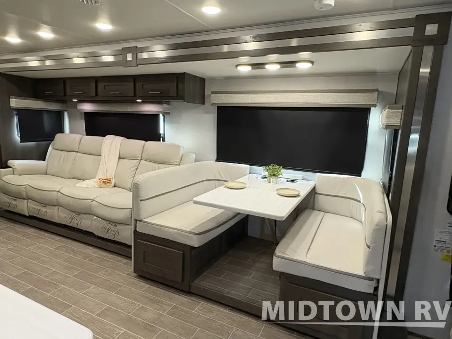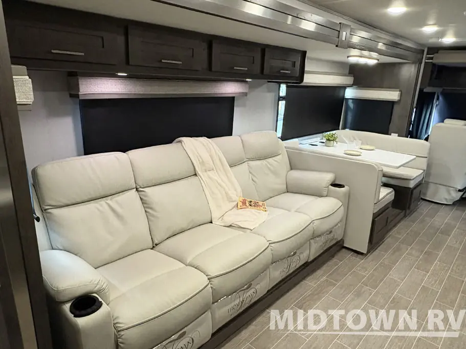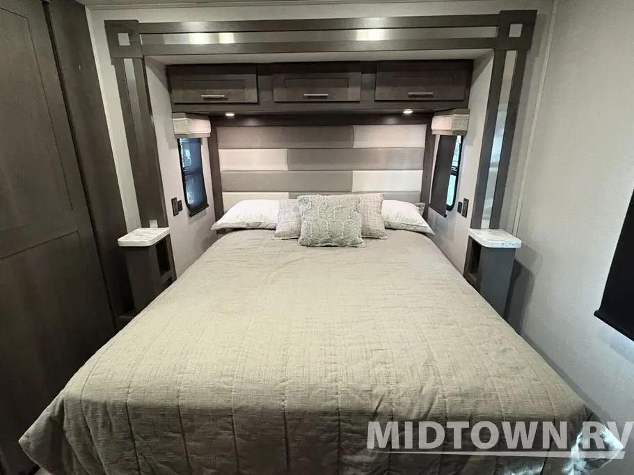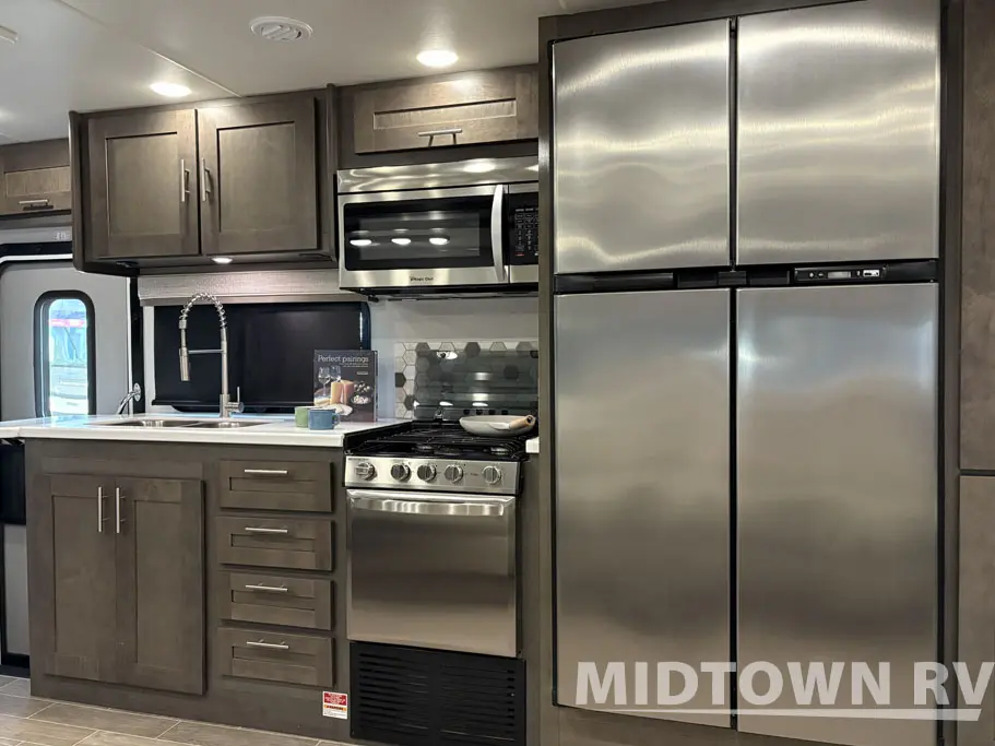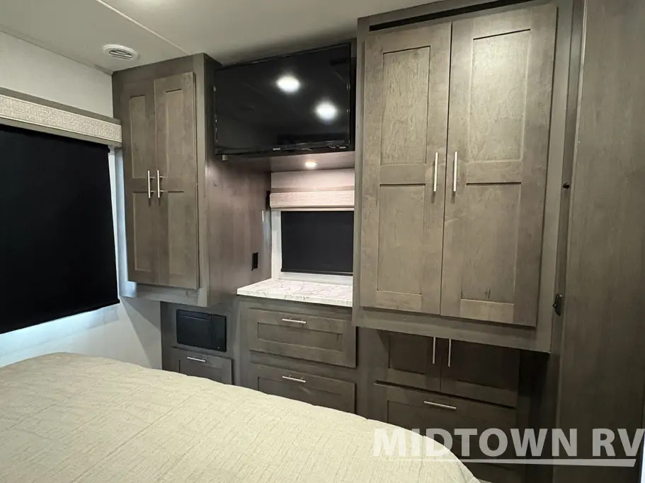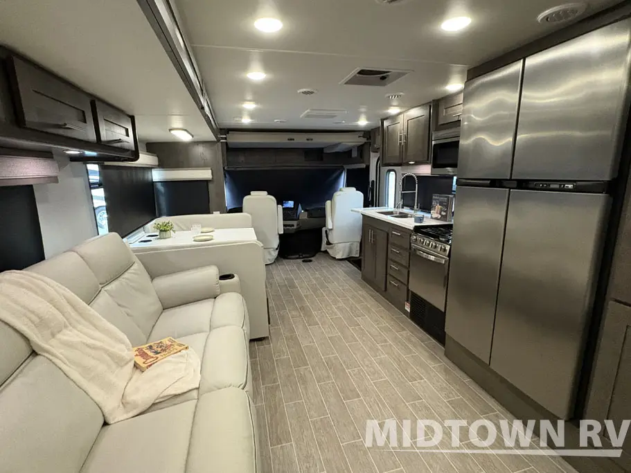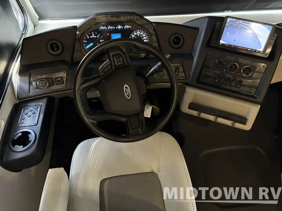 This very well-kept 2022 Georgetown G5 31L combines comfort, style, and modern amenities in a manageable 34-foot Class A motorhome. Designed for both weekend getaways and extended adventures, it offers the ideal balance of luxury and drivability. Powered by a reliable Ford V8 chassis, the Georgetown delivers smooth handling and plenty of power for highway cruising or mountain driving. The exterior features clean modern styling, generous storage compartments, an automatic leveling system, and a large power awning with LED lighting for effortless outdoor living. The gourmet kitchen is equipped with solid-surface countertops, residential style appliances, and ample storage. A comfortable seating arrangement faces the entertainment center with fireplace and TV, while the booth dinette easily converts for extra sleeping space. The private rear bedroom features a king bed, wardrobe storage, and its own TV, while the bathroom offers a large shower and modern finishes. With sleeping for up to six, this coach is perfect for couples or families. For additional information please contact us at 1-800-667-4667, or come down and see for yourself at our Midtown RV location, 310 Industrial Ave. West, Penticton, BC. During business hours please call or text us at 250-492-5705, for all after-hour sales inquiries email us at [email protected]. Dealer VSA#5114. Pricing excludes $599 documentation fee and applicable taxes.
