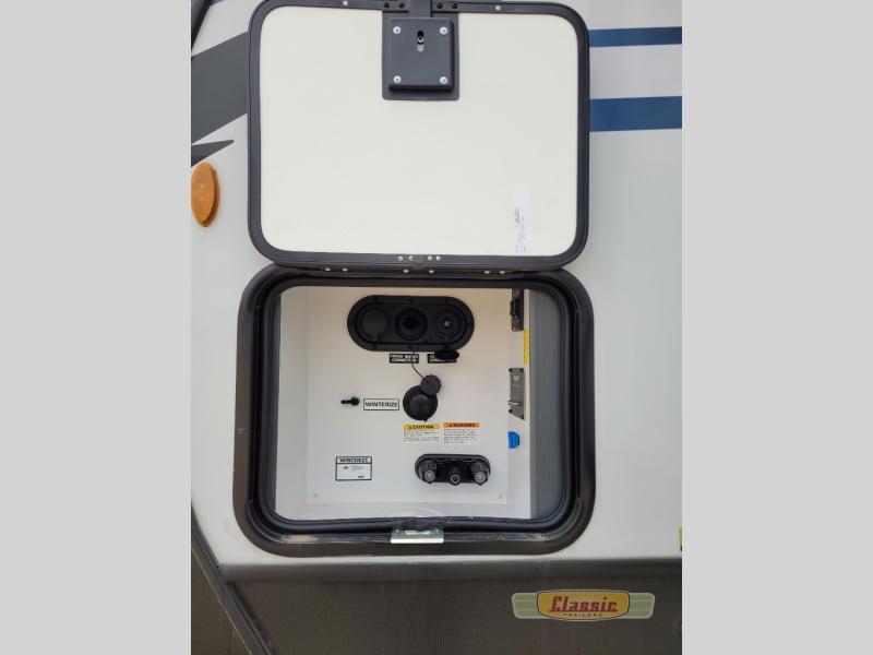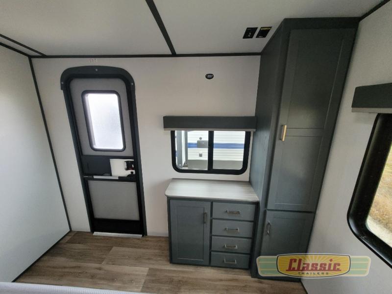 Camp better in any one of these Keystone RV Premier Ultra Lite travel trailers! They may be light in weight, but they still pack in all of the “glamping” features. The fully walkable roof comes with a one-piece TPO roof membrane and the full front cap comes with KeyShield automotive grade paint and protective liner to help it endure the rigors of the road. Power stabilizer jacks get rid of the hassle that manual crank jacks cause, simply stabilize it at the touch of a finger. The easily accessible docking station has water connections, water heater bypass, KeyTV hookups, stabilizer jack switches, and winterization access. You will notice the HyperDeck flooring is stronger, lighter, and more resilient than the traditional wood laminated flooring. A few Keystone exclusive features you will appreciate include a Tru-fit slide construction, Tuf-Lok thermoplastic duct joiners, color-coded unified wiring, and 4G LTE and WiFi prep. See which one fits your needs today!