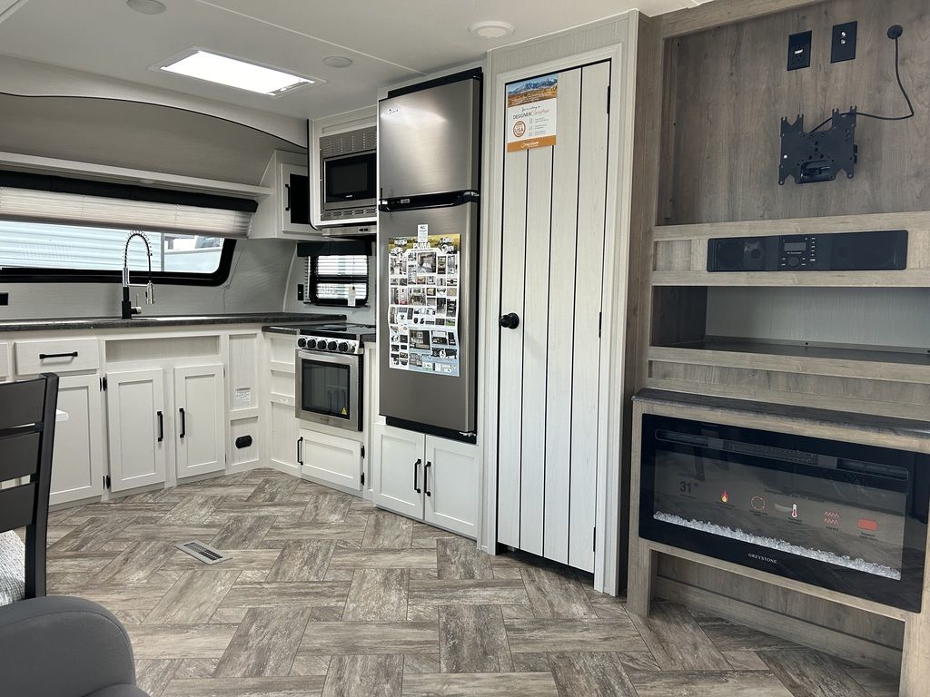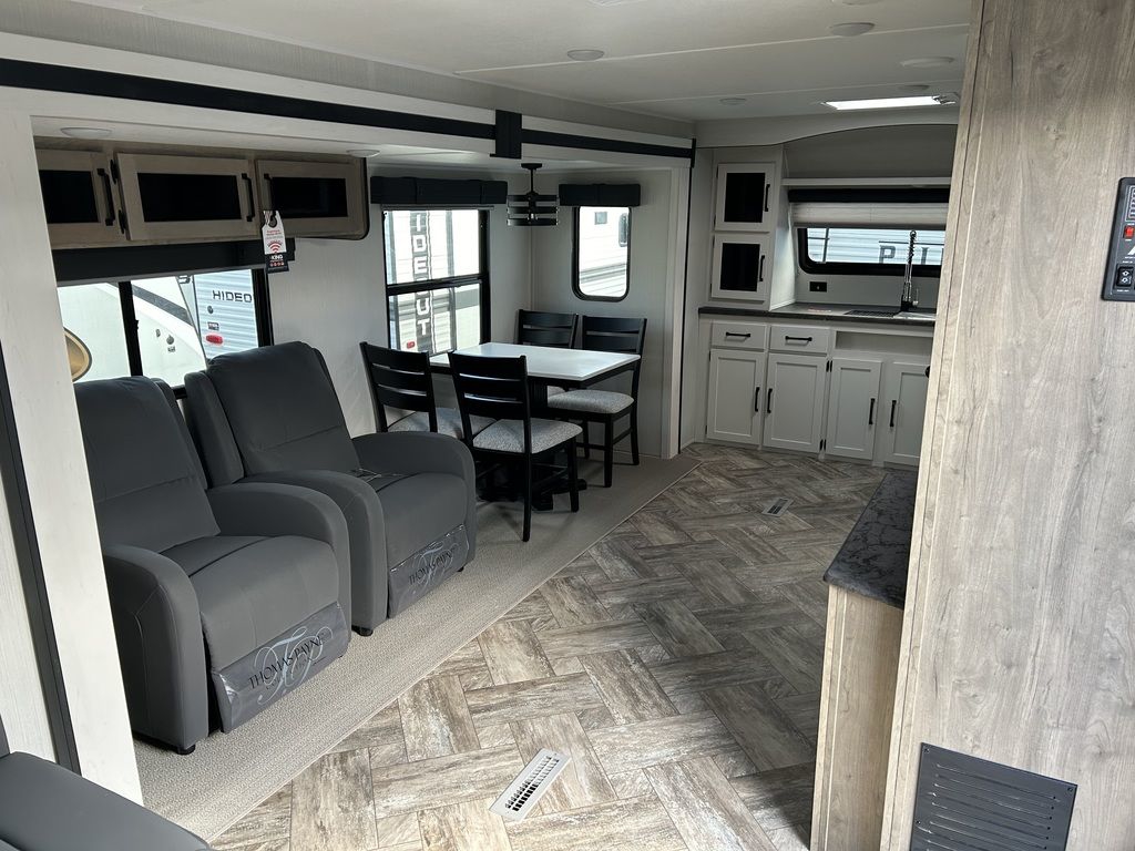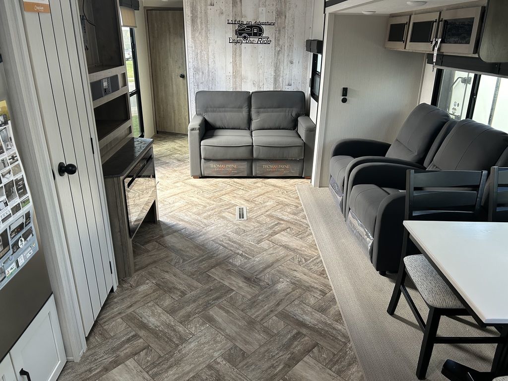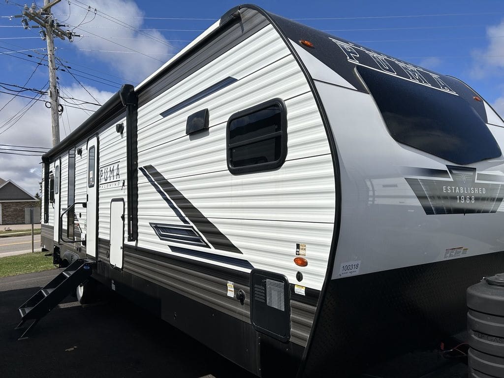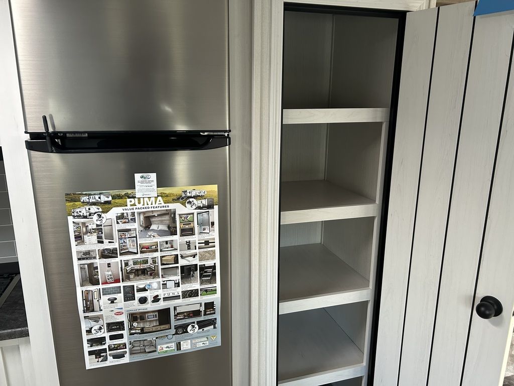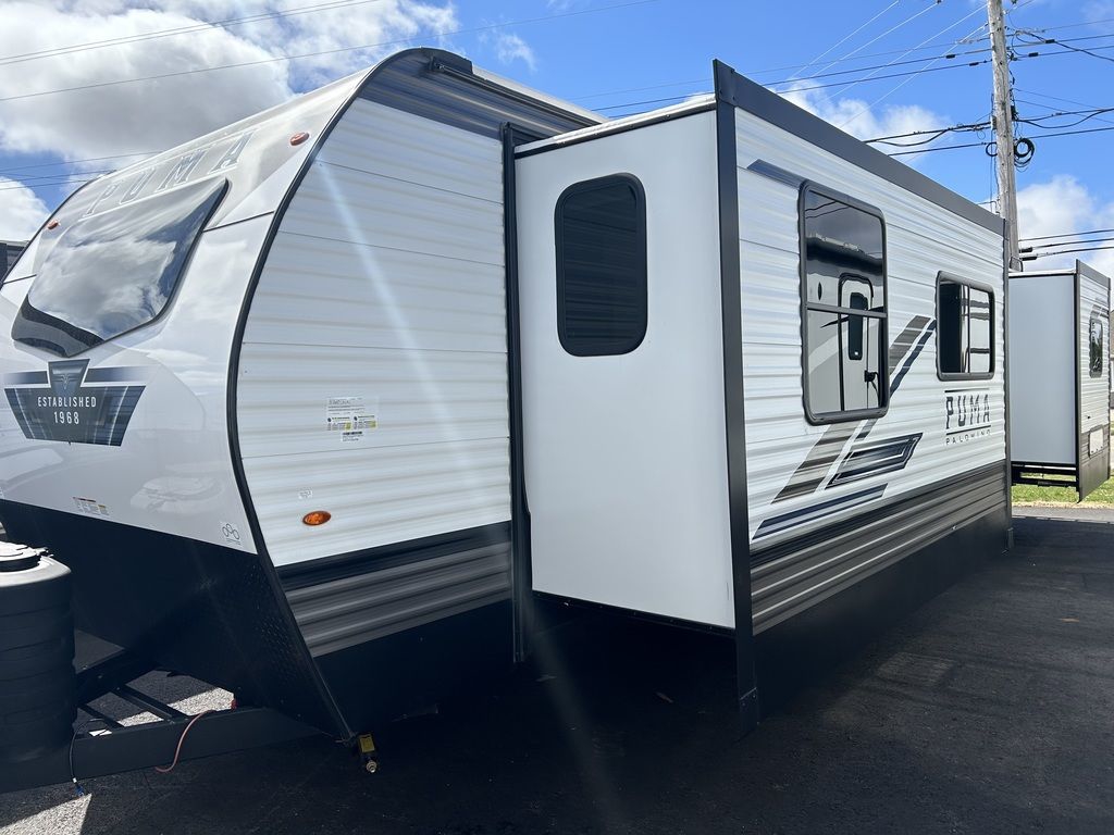 Great bedroom with slide, views from front window! 2023 Palomino Puma 31FKRKPuma Travel Trailers and Fifth WheelsWhen you’re looking for adventure, nothing is better suited for family fun than a Puma. These rugged built, easy-to-tow, travel trailers make your next adventure fun & carefree. Puma offers you many floorplan choices including the largest selection of bunk models in the industry. The majority being 1/2 ton towable. So hook onto a Puma and go adventuring.The best pull in town! Puma offers multiple Fifth Wheel floorplans that include options for every lifestyle, from couples coaches and bunk models, to the Side Paw outside kitchen. You can tailor your Puma Fifth Wheel to your lifestyle and enjoy your camping experience even more. More than half of our Fifth Wheels are 1/2 ton towable. So pull your Puma to the wilderness and enjoy the peace and quiet of the great outdoors.Features may include:Interior80" Interior HeightFloor Ducted HeatUSB Charging Ports35,000 BTU Furnace14" Deep Overhead Cabinets in Super-Slide ModelsDecorative Kitchen BacksplashKitchen Ball Bearing Drawer GuidesSpice Rack (Kitchen)Divided Silverware DrawerHigh-rise Faucet w/Sprayer3-Burner, High Output RangeUndermount Stainless Steel SinkRoll-up Stainless Steel Sink CoversNew Hardware Black Handles & Hinges (Kitchen, Living Room)Glass Range CoverBuilt-in Knife RackLED Ceiling Lights55 Amp Converter w/Battery ChargerAM/FM/Bluetooth StereoJack Knife Sofa w/Pull-down Center Drink Tray – Storage UnderneathKing Antenna w/WiFi PrepJack Knife Sofa Under BunksPush-back Recliner(s) (select models)Wood Medicine Cabinet with Mirrored DoorPower Vent in BathGlass Shower Door (select models)12V Shower LED Light60” x 80” Queen BedsHigh Density Foam MattressUpgraded Soft Teddy Bear Bunk MatsShirt Closet in Front BedroomsNightstands in Front BedroomsTwo Interior DecorsCoat Hooks in Entry Way (Most models)Square Dinette Seat Bases w/Cabinet StorageResidential Carpet with padDesigner Window Treatments (Living room)ExteriorFriction Hinged Radius Entry DoorsPowder Coated FramesSuper Lube AxlesTinted Safety GlassClamp Ring WindowsPass-Thru Storage (Where applicable)Power Awning w/LED Light StripAlphaPly Roofing Membrane w/Limited Lifetime Warranty4 Manual Stabilizer Jacks9" Three-tier StepsRain Gutters w/Large DownspoutsABS Automotive Style Fender SkirtsRadius Baggage DoorsDarco Wrapped UnderbellyEnclosed Underbelly (Most models)5/8" Araucoply Tongue and Groove Plywood Floor Decking (25 Year manufacturer’s limited warranty)2" x 3" Flush Floor Joists on 12" CentersPass-Thru Exterior Baggage Compartments (Where applicable)2-20 Lb. Gas Bottles6 Gal. DSI Hot Water HeaterRack & Pinion Electric Slide System w/Manual Override (Standard on all slide outs)Clamp Ring Luggage Doors