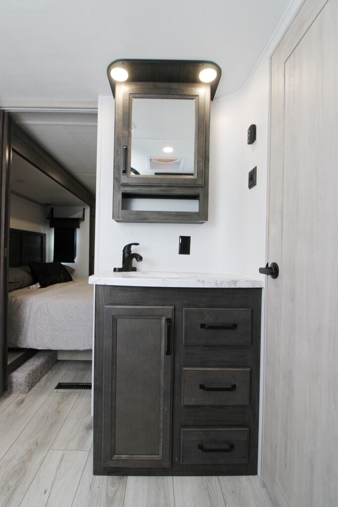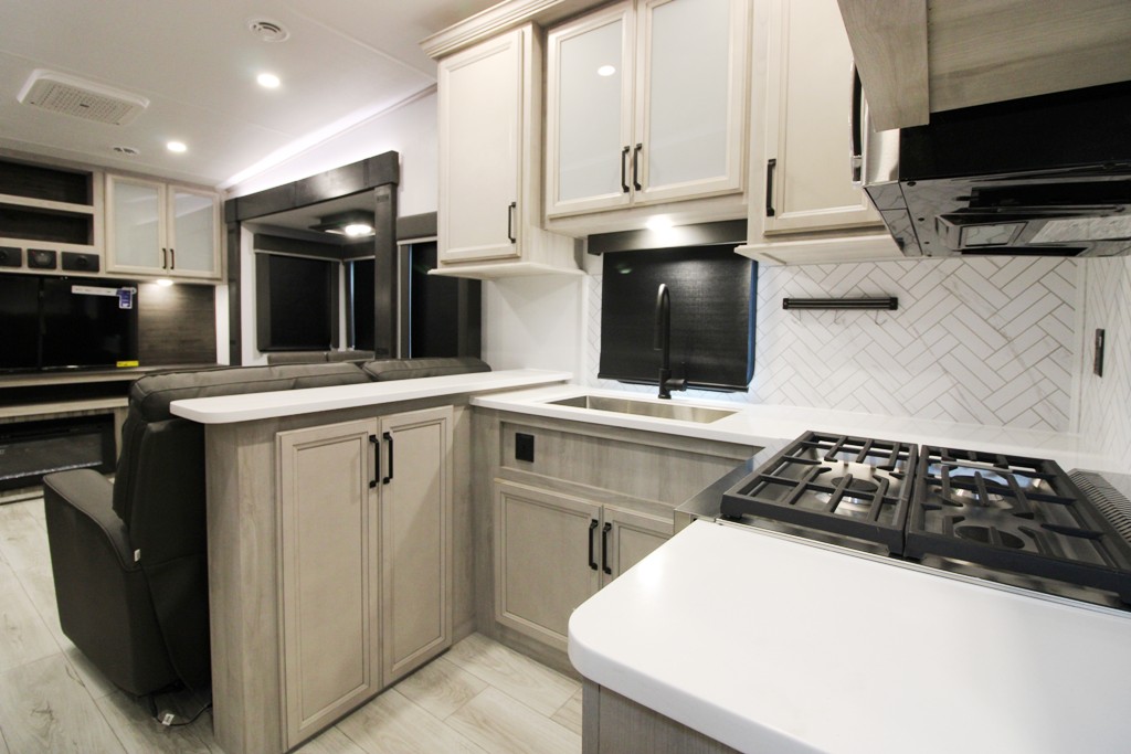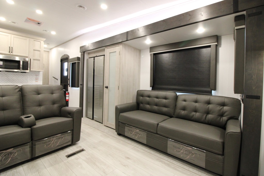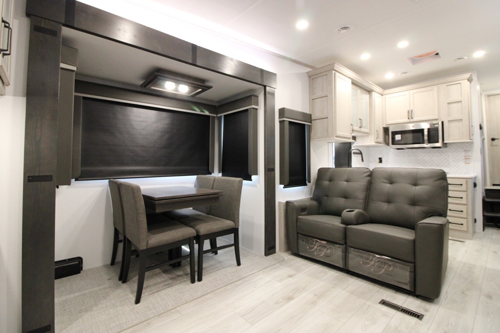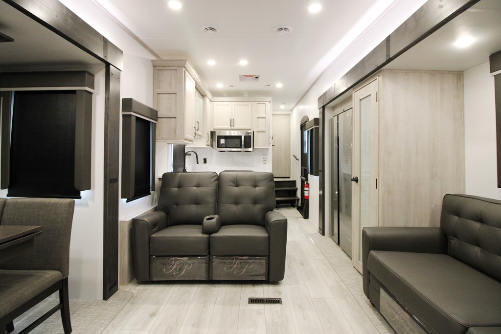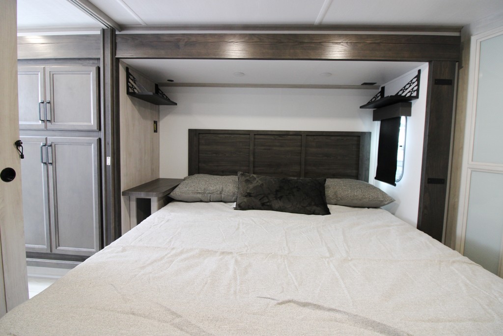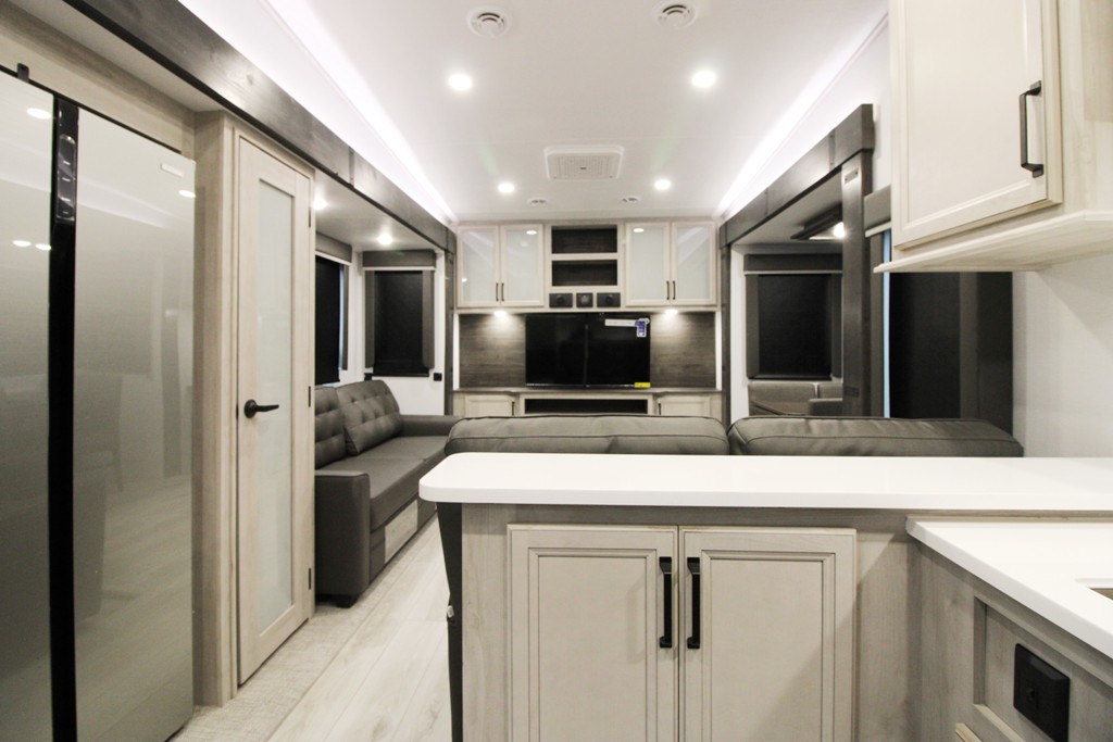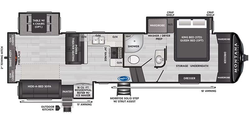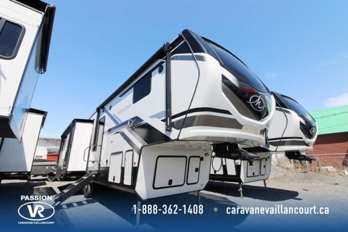 The fifth wheels Montana from Keystone. the best-selling brand worldwide in the luxury category. have a solid construct and are very well insulated. They are very luxurious. well equipped. and have a lot of interior storage space as well as a modern decor. Perfect for all of your excursions to come. All that’s missing is you!