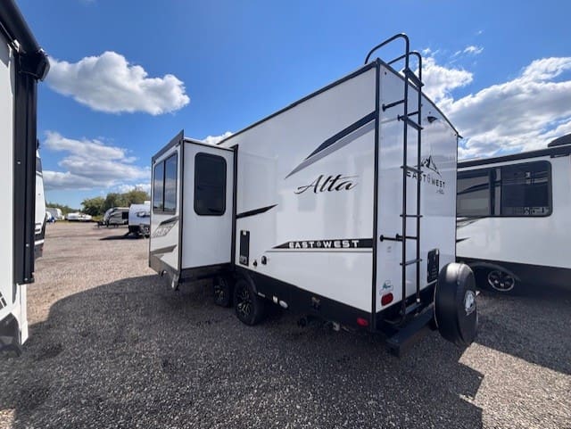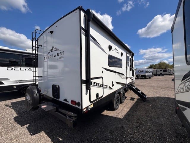 Some exterior features include pass-through storage, a TV hookup, and a 16′ power awning to shade you from the sun. The Alta 1900MMK is truly a stunning travel trailer that us light weight, easy to tow, and houses all of the necessities for all travellers.