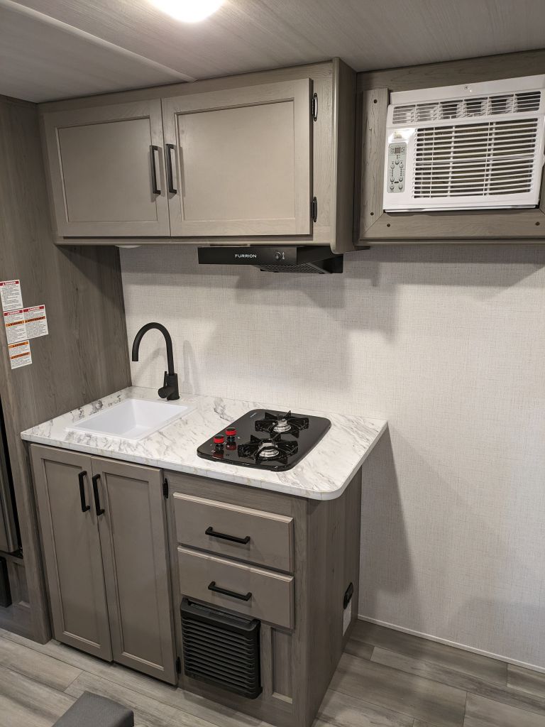 Equipped with a reliable on-demand tankless water heater, the Hideout 178RB provides instant hot water for showers and cooking, a valuable addition for campers who need quick convenience.