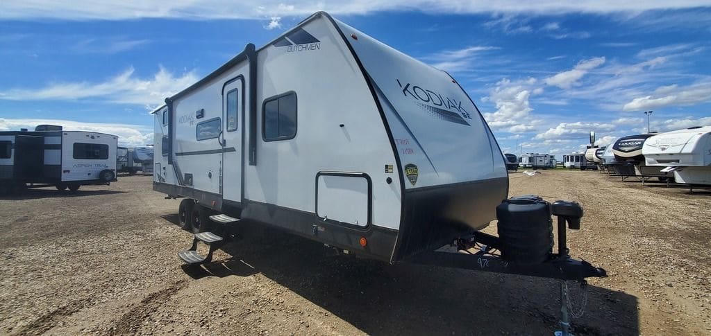 2024 Dutchmen Kodiak SE 27SBHKodiak SE is a light weight travel trailer that is perfect for weekends, loaded with amenities to make you comfortable wherever you roam.Features may include:ExteriorDiamond Front PlateEasy Lube Axles20lb LP Bottle w/Cover TV AntennaWinterizationDark Tinted Safety Glass WindowsSpare Tire & CarrierLP Quick DisconnectBear Cave StorageInterior60” x 80” Residential Queen MattressRange Hood w/12V FanHigh Output FurnanceSmoke, LP Detector, Carbon Monoxide Detectors80" Interior HeightOn-Demand Tankless Water Heater2 Burner Cook TopMicrowaveCentral Control StationFire ExtinguisherCarpet Free Slide Out FloorHyperDeck Flooring
