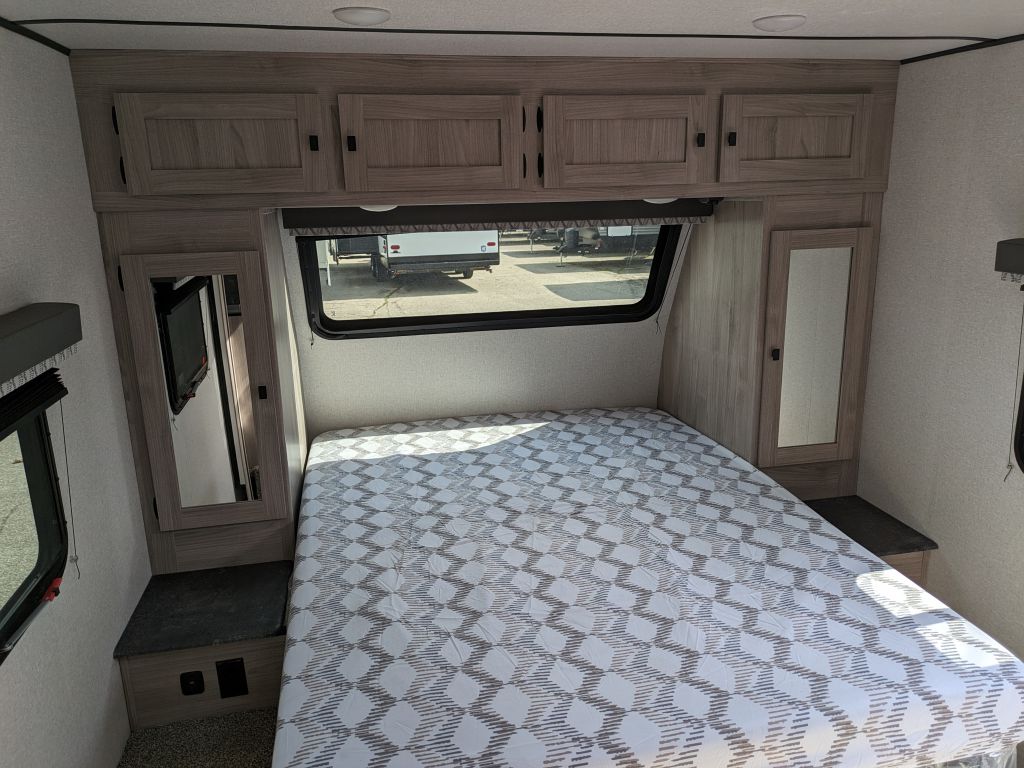 The Northern Spirit XTR, built with a lower profile, than the popular Northern Spirit has a primary focus on smaller, easier to tow models. The front window and open bedroom concept create a larger more open feel than most brands of similar size.
