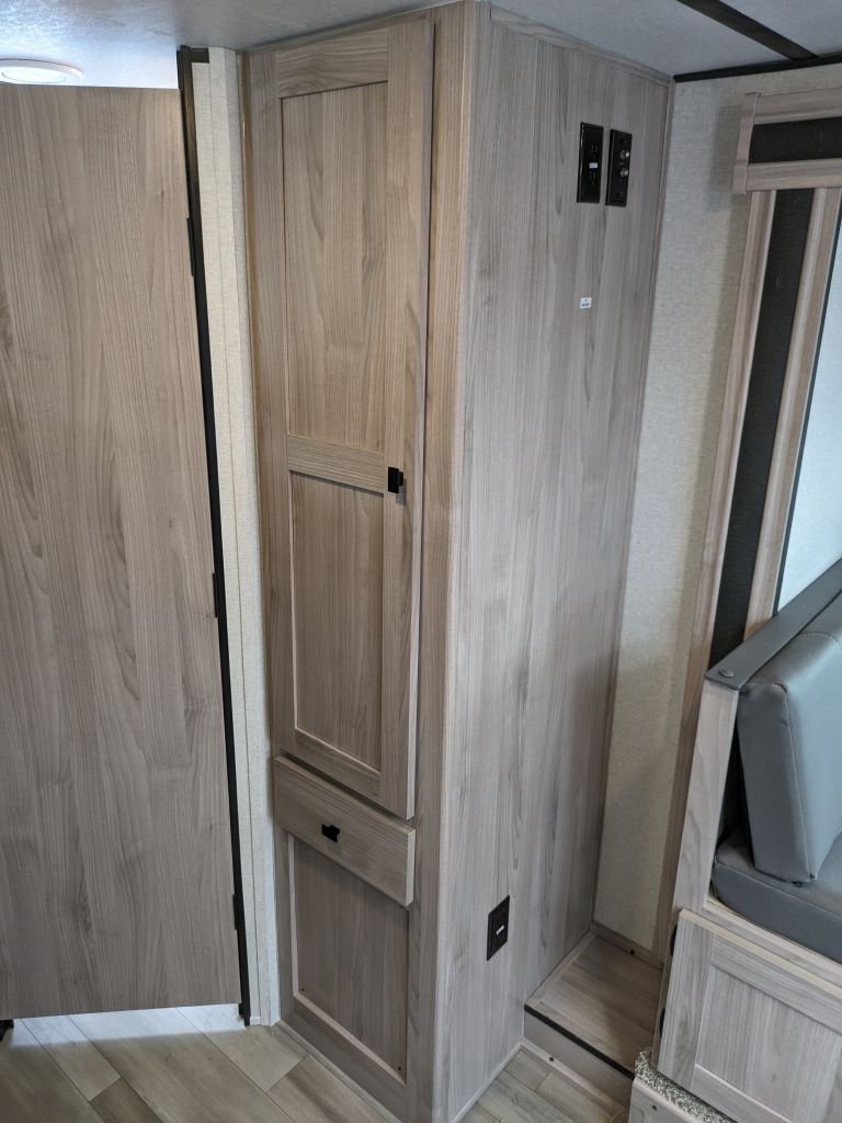 The Northern Spirit XTR is the first travel trailer to utilize Max Bed Storage, a unique storage concept that maximizes interior bedroom storage by lifting the entire mattress frame up. Revolutionizing under bed storage, the Max Bed Storage system includes 3 oversized drawers, shoe storage, padded bench seat, 6 “catch-all” openings, Laundry Center and blanket/pillow storage!