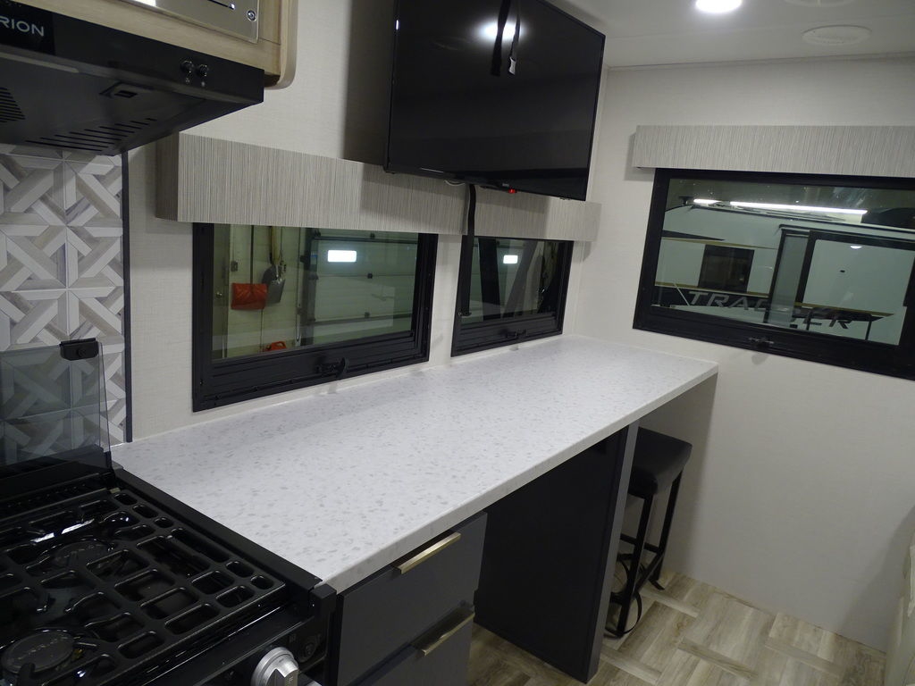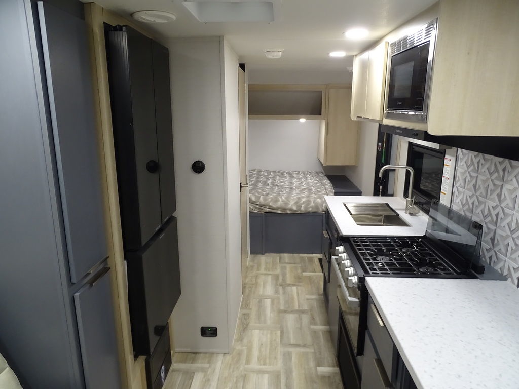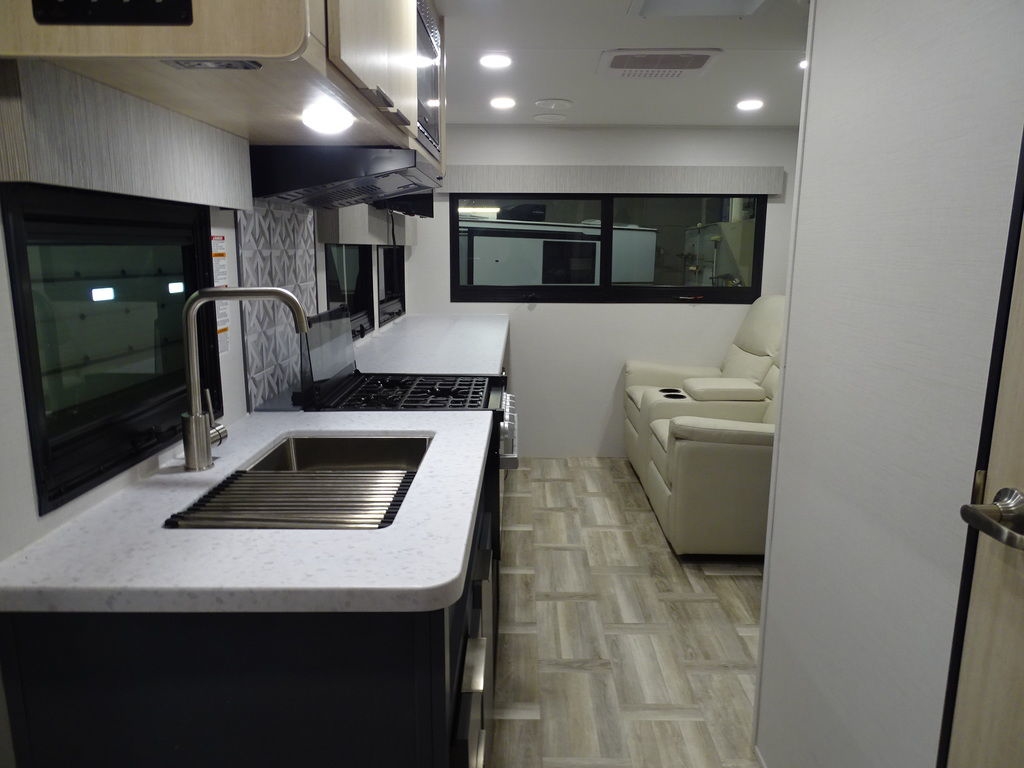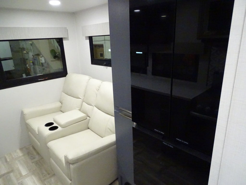Features Include Ducted A/C Power Awning On Demand Water Heater 10 Cu. Ft. Refrigerator Power Front Tongue Jack Front Power Stabilizer Jacks Rear Power Stabilizer Jacks Diamond Plate Rock Guard Aluminum Wheels Microwave Stereo LED Lighting Pleated Shades Theatre Seating Solar panel 200 Watts Weight 4314 Lbs