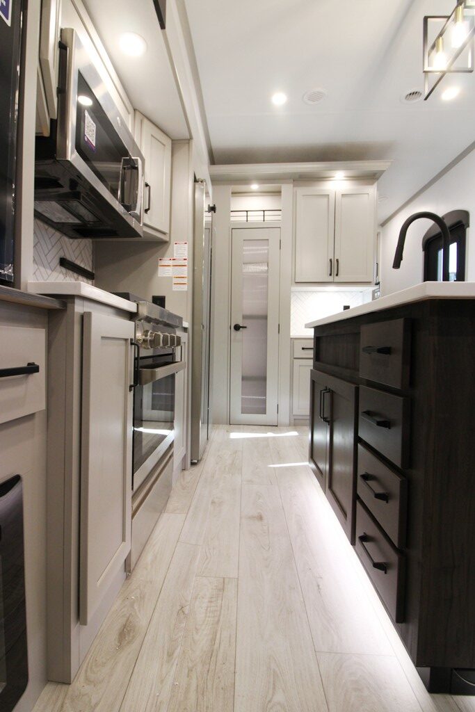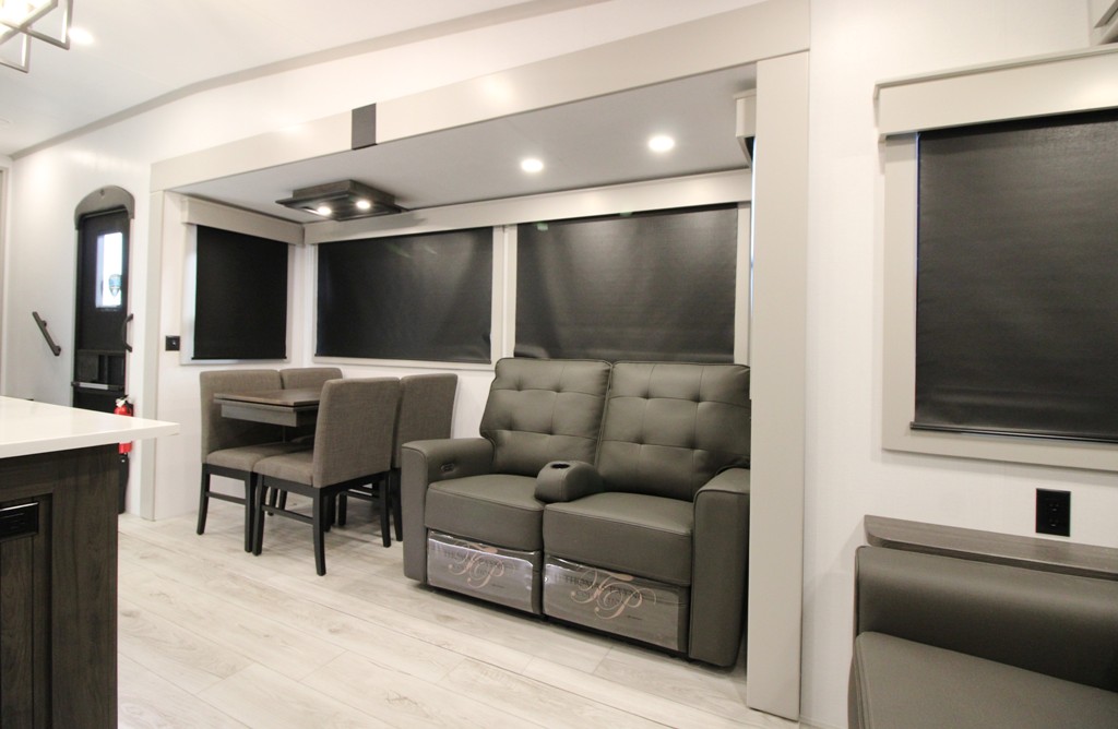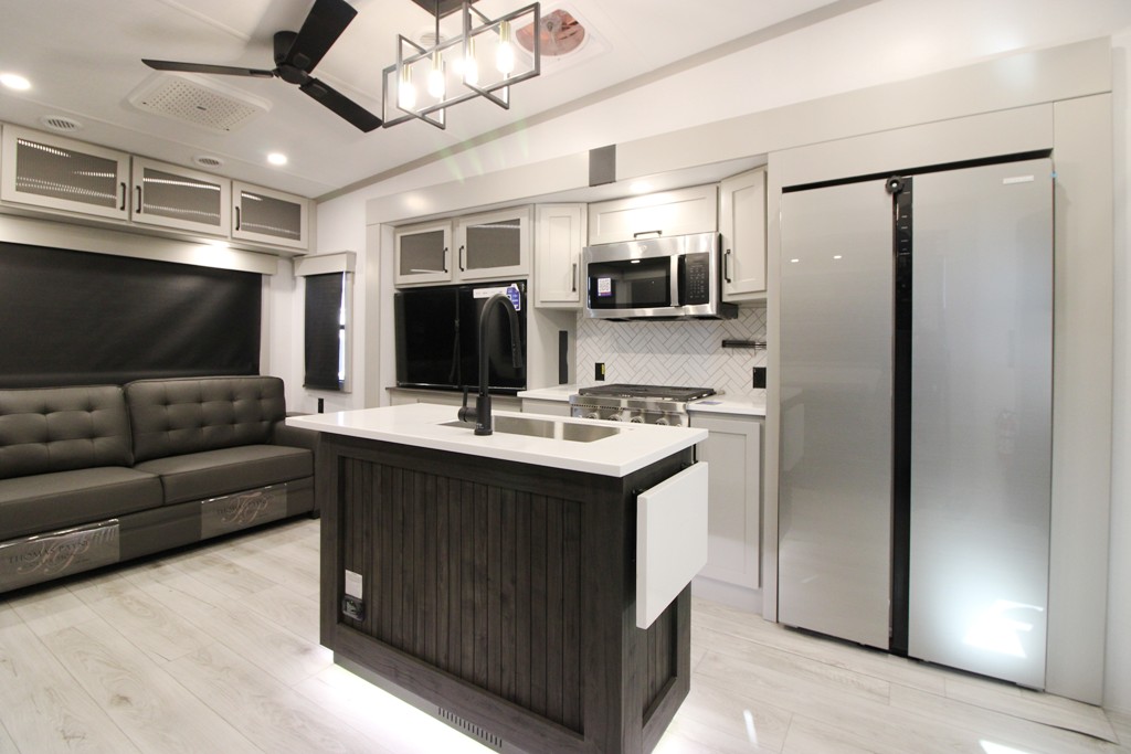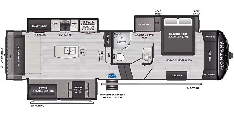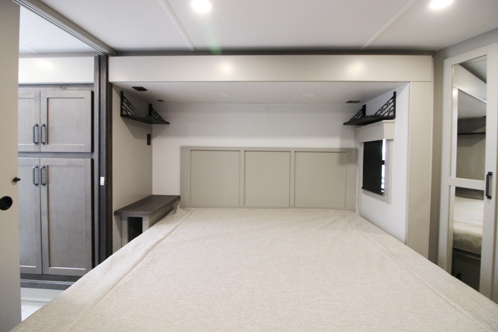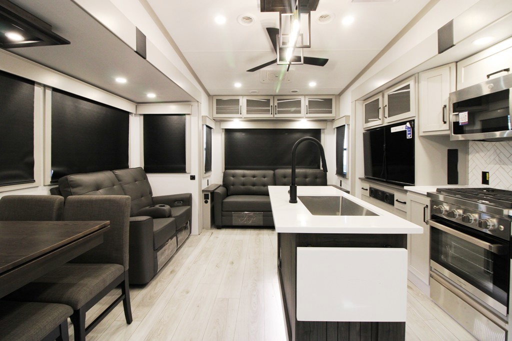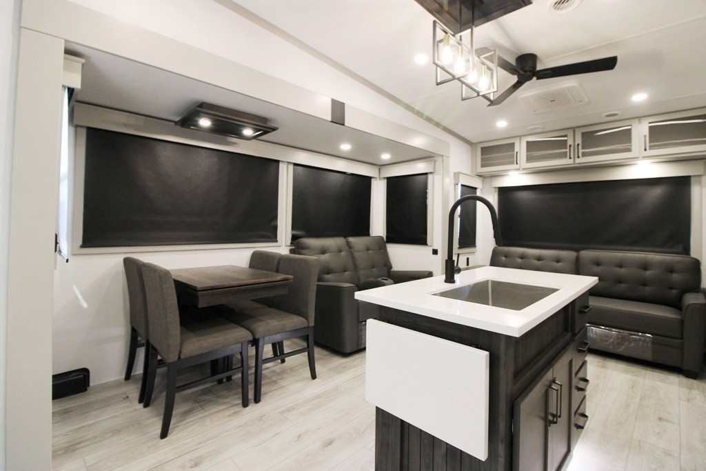 The fifth wheels Montana from Keystone. the best-selling brand worldwide in the luxury category. have a solid construct and are very well insulated. They are very luxurious. well equipped. and have a lot of interior storage space as well as a modern decor. Perfect for all of your excursions to come. All that’s missing is you!