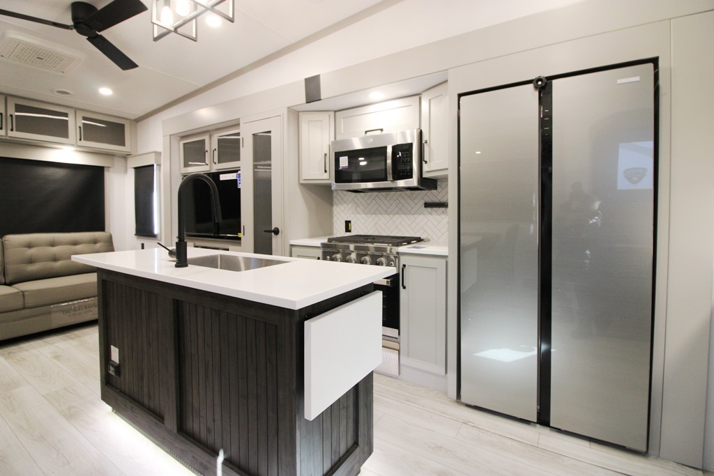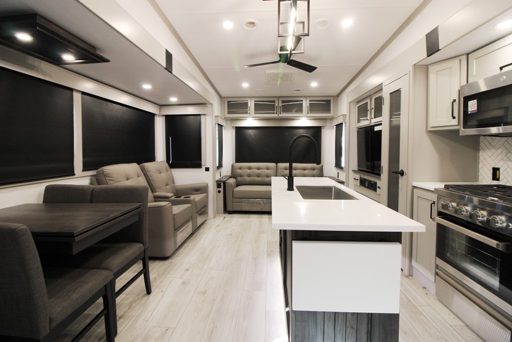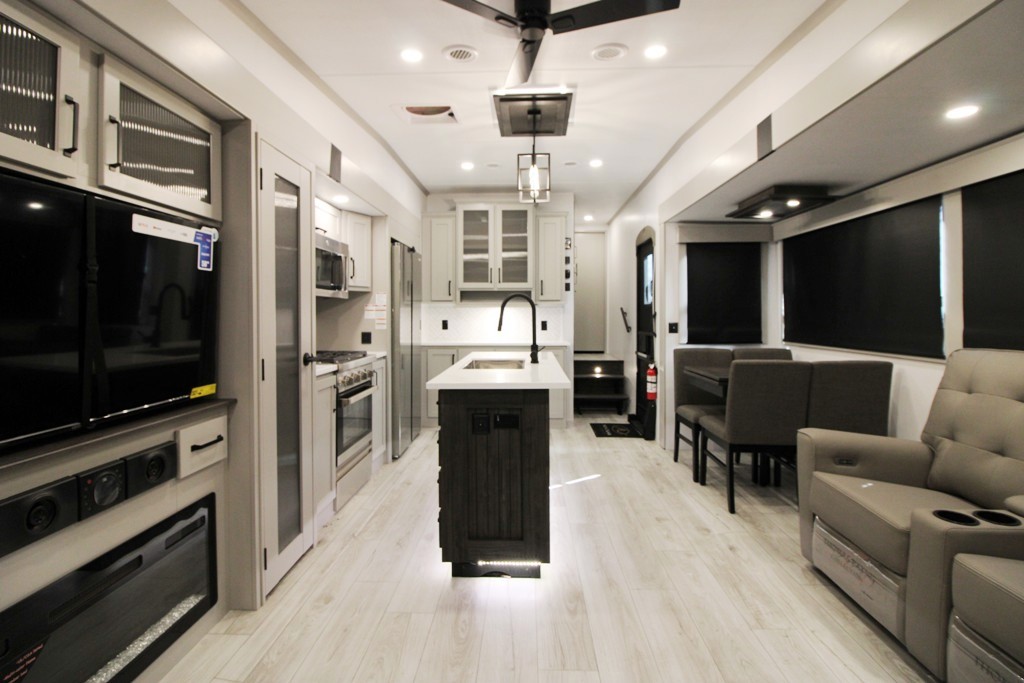 The fifth wheels Montana from Keystone. the best-selling brand worldwide in the luxury category. have a solid construct and are very well insulated. They are very luxurious. well equipped. and have a lot of interior storage space as well as a modern decor. Perfect for all of your excursions to come. All that’s missing is you!