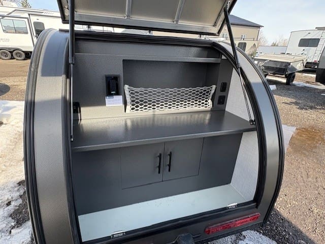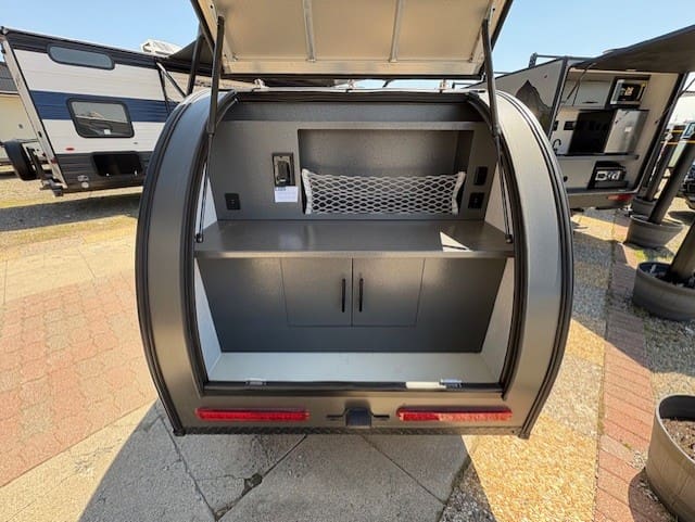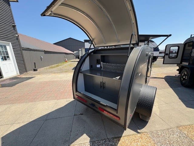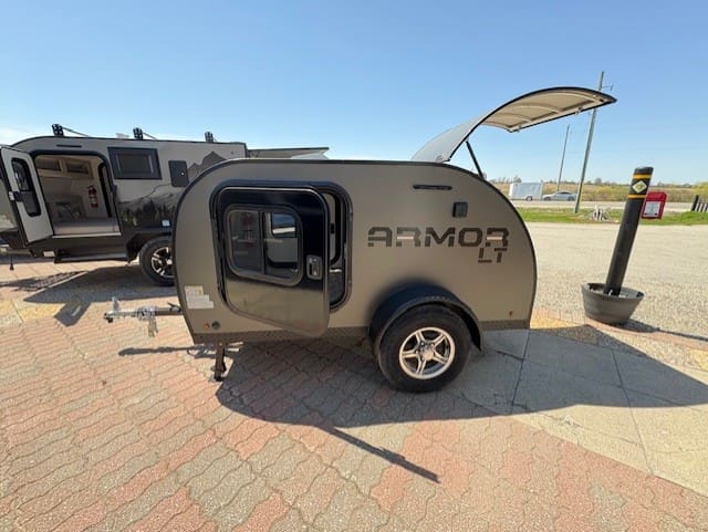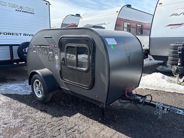 This compact travel trailer combines innovative construction with practical amenities for comfortable adventuring. The exterior features revolutionary Azdel Construction—a lightweight polypropylene-fiberglass composite that replaces traditional plywood, offering superior sound/weather resistance at half the weight. The welded aluminum frame provides durability without excess weight, while dual side entries enhance accessibility. Practical touches include powder-coated aluminum wheel fenders and an exterior DIY kitchen storage area.