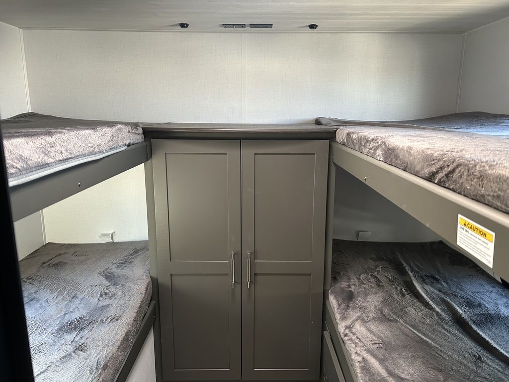 Lightweight, 1/2 ton towable, single slide and quad bunk room. Great family unit 2025 Keystone RV Bullet Classic Travel Trailers 2840QBOne and DoneBullet Classic single-axle travel trailers redefine compact exploration. Designed for effortless towing and maneuverability, these trailers offer a perfect blend of convenience and comfort for adventurers on the go. Goodyear Endurance tires and TORFLEX® rubber torsion suspension axles are new for 2025 and deliver unparalleled peace-of-mind at this price point. Bullet Crossfire single axle models' smart use of space and a range of features provide an ideal platform for your unforgettable journeys.Features may include:ExteriorEngineered specifically for each floor planSeamless, laminated and gel-coated filon exterior80% Tinted safety glass windowsFully walkable roofOne-piece polypropylene underbellyLeaf Spring Straight AxlesTamarack Tires4 – 3,000 lbs 24" stabilizer jacks26" X 74" Main entrance door w/ deadboltBattery disconnect37 gal. fresh, 30 gal. black and 30 gal. grey110 outletsInteriorResidential durable Beauflor® vinyl flooringDeluxe night shadesUpgraded valancesTranquil Timber DécorLED lighting throughout