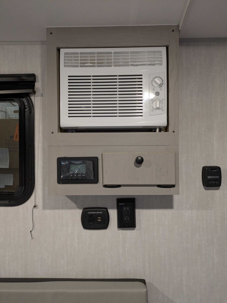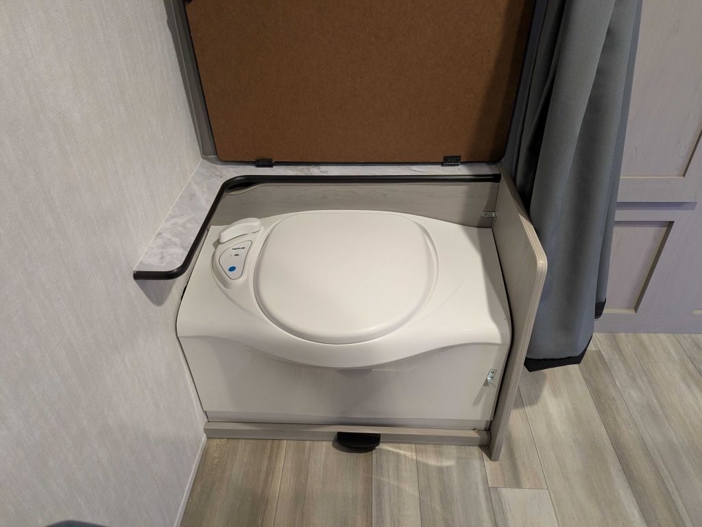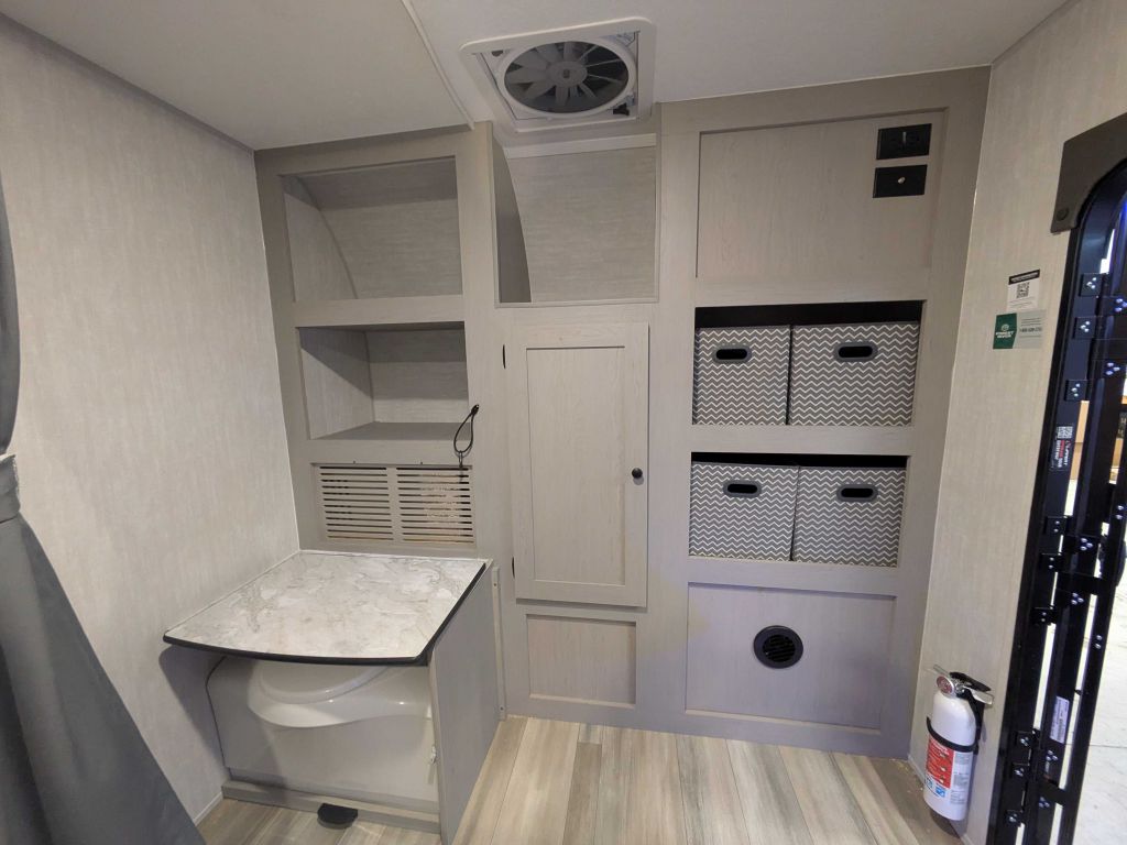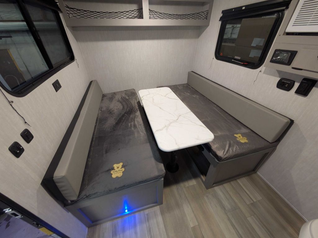 Inside, the 11000 ROK provides practical essentials, including a cassette toilet for easy access, USB charging ports to keep devices powered, and interior and exterior 110V power outlets for versatile use. With LED lighting for bright, energy-efficient illumination, this model supports a comfortable, connected experience.