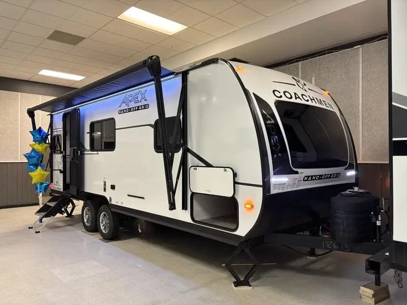 Coachmen Apex AAPT213RDS- Our most spacious Nano in the lineup. This floorplan has both a sofa and dinette with great separation to the bedroom. Another dual axle trailer that only weighs 4,000 lb. You have to see this one for yourselves.