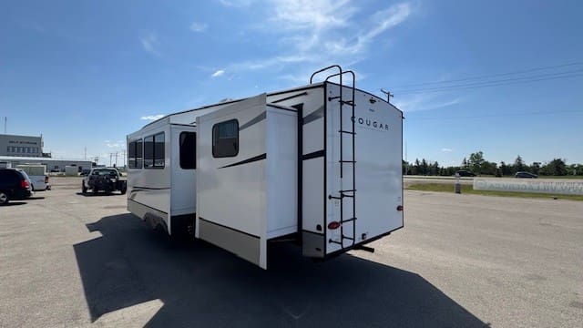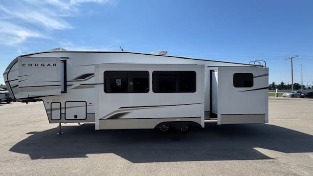 The 2025 Cougar 32BHS delivers comfort and convenience in a towable half-ton package. With three slide-outs, a bunkhouse sleeping up to ten, and premium features inside and out, it’s designed for family adventures big and small.