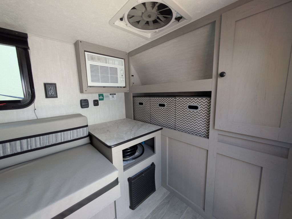 Inside, the Clipper 9000ROK balances efficiency and comfort. It features a 5,000 BTU A/C unit, a 20,000 BTU propane furnace, and 12V outlets with USB charging ports to keep your devices powered. LED interior and exterior lighting offer energy-efficient illumination, while a 12V power fan ensures adequate ventilation. The trailer also comes with 5/8" tongue-and-groove insulated plywood flooring, providing durability and insulation.