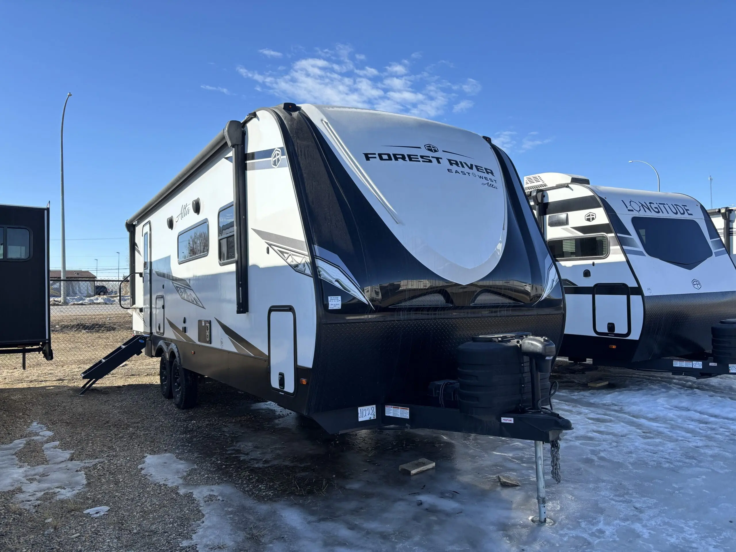 Looking for a trailer that steals the spotlight no matter where you are? The one everyone stares at while driving down the road? Or the one everyone tries to get a glimpse in at the campgrounds? Look no further, the perfect couples coach trailer is here! Enjoy so many luxuries like an oversized fridge, TV and fireplace entertainment centre, the dream-like theatre seats to cozy up in at the end of the day, the large rear bathroom to make getting ready a breeze, the front private bedroom to get a perfect nights sleep in, and to make a perfect time outside even better, a powered awning with LED lights and a bar fridge to complete fun. This trailer is a show-stopper, no matter the destination!!