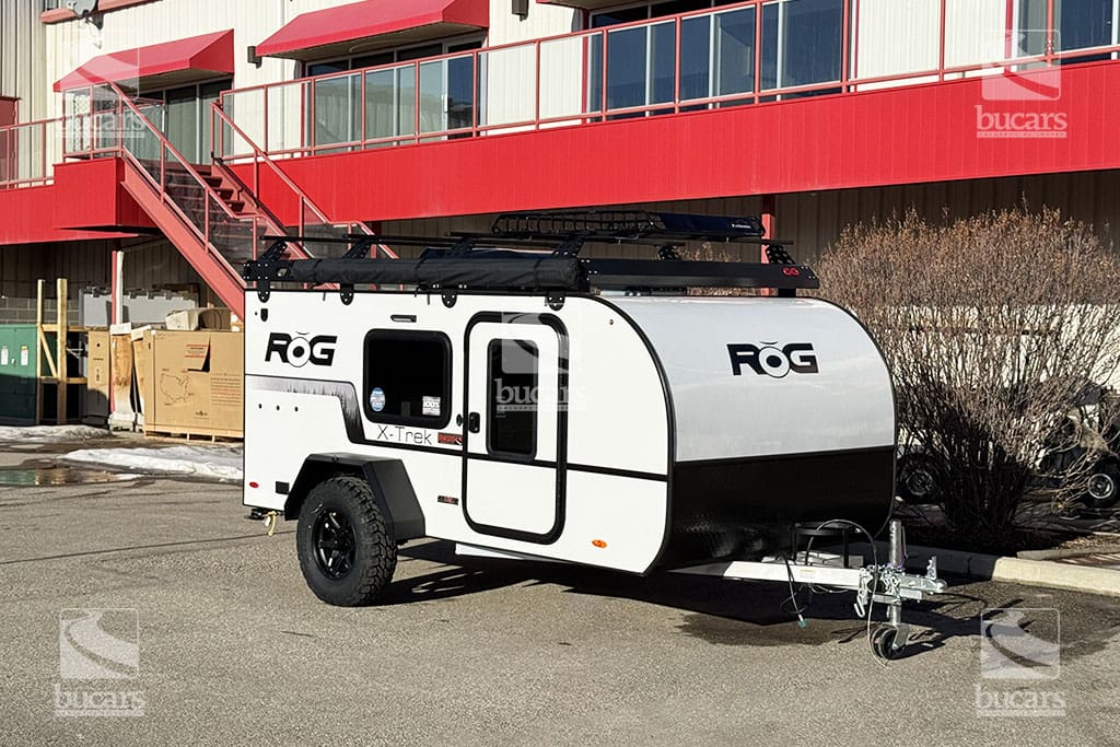 The ROG 12RK-XT is the perfect companion for those who like no-nonsense camping adventures. The robust aluminum tube construction will stand up to the most extreme environments. It includes a rear sink and cargo area, queen bed that converts from a futon for day use. Additional features include tire pressure monitoring system, side mount griddle, roof rack, bag awning, air conditioner, furnace, and bluetooth speaker. And like the entire ROG lineup, this 12RKs all-aluminum construction contains no wood that can rot over time. For additional information on this ROG 12RK-XT, please call or text our main line at 403-207-1666, or come down and see this adventure trailer for yourself at our Balzac lot just north of Calgary. For after-hour inquiries, please text us at 403-207-1666.