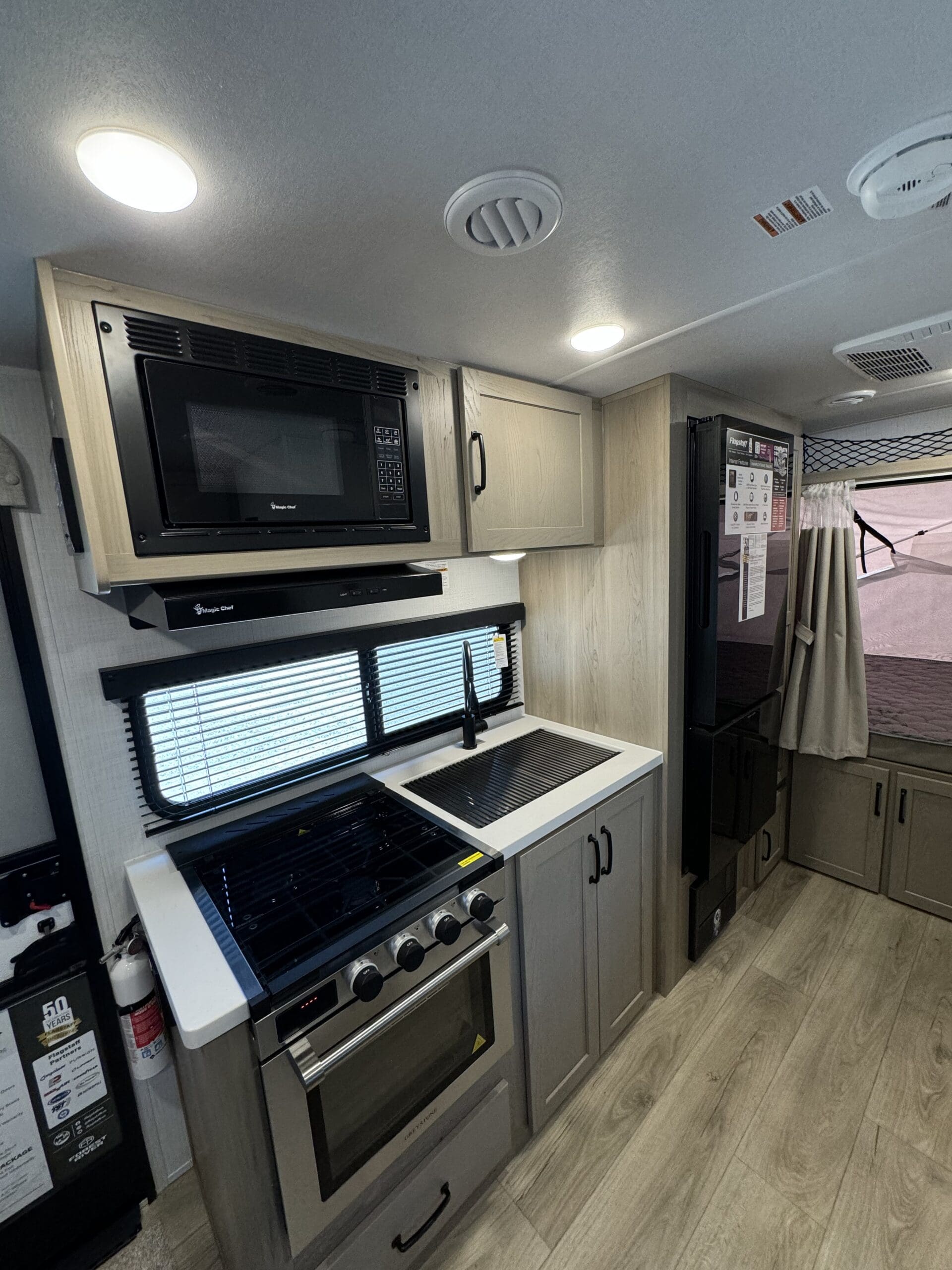 From its modern kitchen and full bathroom to its off-grid capabilities and outdoor cooking options, the Flagstaff Shamrock 17E invites you to make the most of every journey, whether you’re staying at a luxury RV resort or exploring remote wilderness trails. It’s more than a travel trailer—it’s your mobile basecamp for adventure, connection, and relaxation
