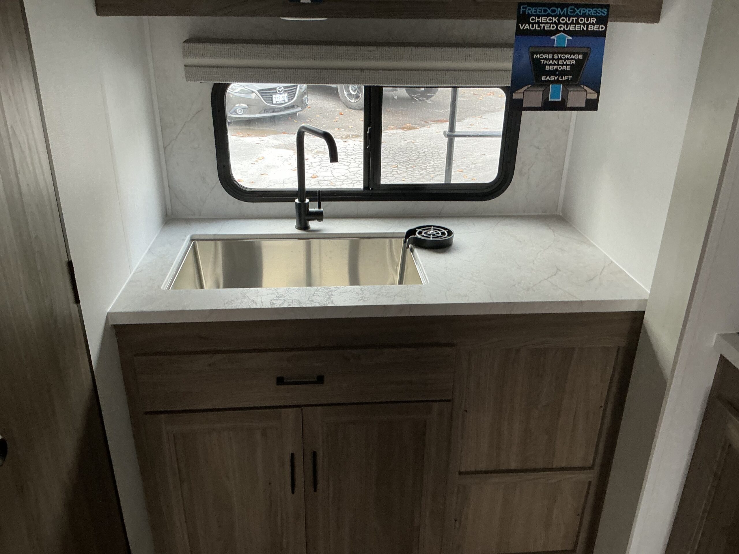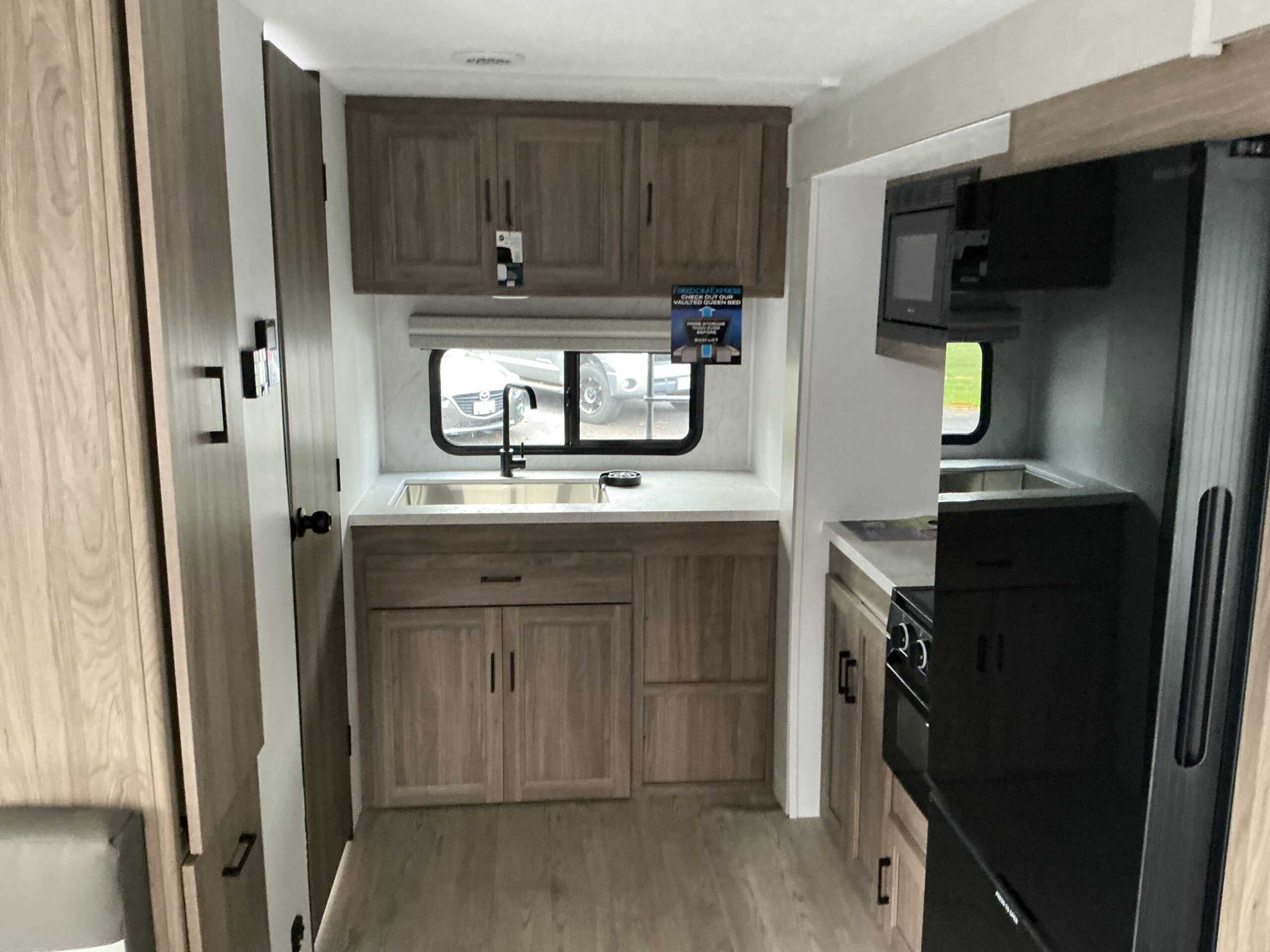 • Freedom Value Package: 3/4 Gel Coated Fiberglass Cap w/ Auto Glass Windshield | Alumicage Const | Vacuum Bonded Walls w/ Azdel Composite Ext. and Int | Alum Wheels | Spare Tire | Det Power Cord | Power Awning w/ LED Light Strip | Tinted Safety Glass | Front Rock Guard | E-Z Lube Axles | Spread Axle Design | Heated Enclosed Underbelly | Full Walk-On Roof | Tufflex PVC Roofing | Ext. Shower | Winterize Ready Kit | Black Tank Flush | Ducted Furnace and Air | Magnetic Compartment Doors | 24″X48″ Outdoor Table | TV Ant (wifi/4G prep) | Ext. TV Hook-Up | Freedom Solar Ready | Backup Camera Prep | Battery Disconnect | Aluminum Solid Step | Pet Leash/Bottle Opener | 81″ Interior Height | Bluetooth Speaker | LED Smart TV | LED Interior Lighting | Night Shades | Hidden Hinge Cabinet Doors | Sink Covers | Microwave | Oven w/ 3 burners & Glass Top | Dbl Door Refer | Utensil Drawer | 60″X80″ Bed w/ Cover | USB ports | Skylight/Power Vent in Bath Porcelain Toilet | Friction Hinge Entry Door | Freedom Vault Bed Storage | 15K A/C | RVIA