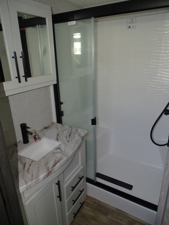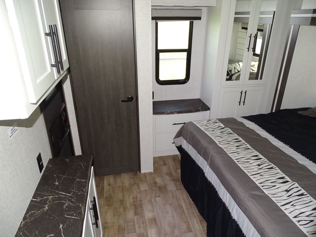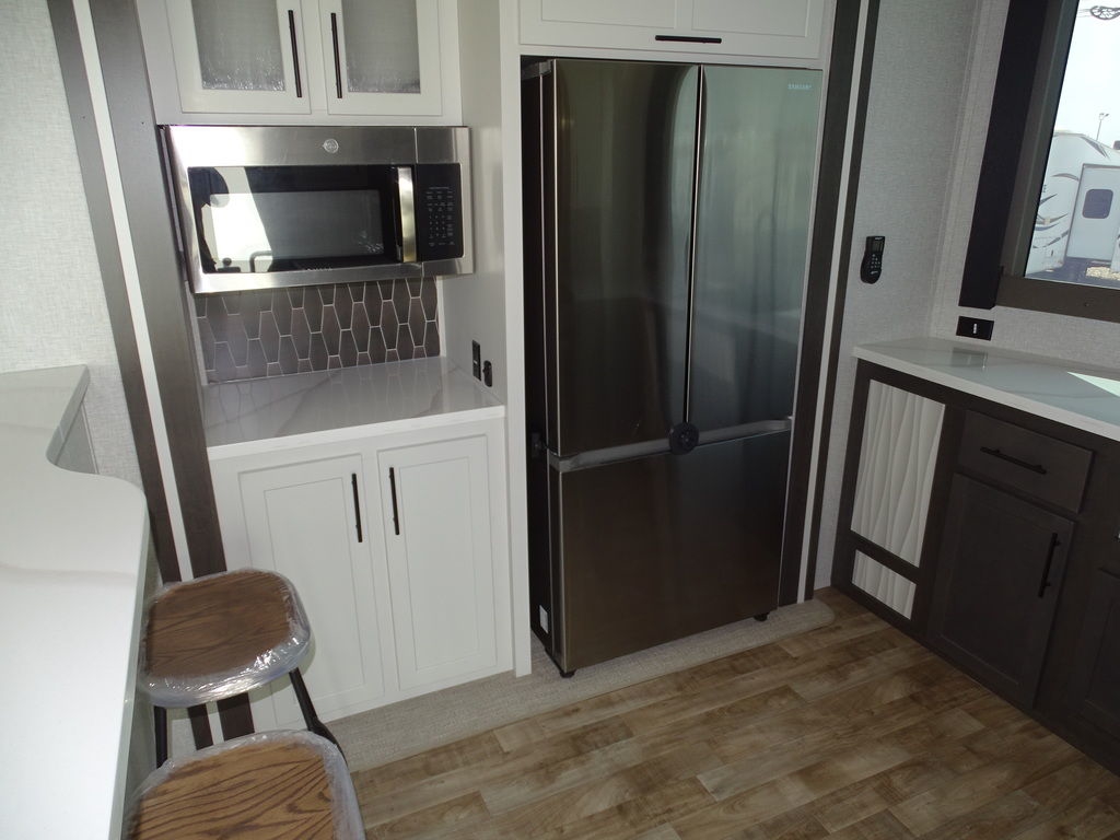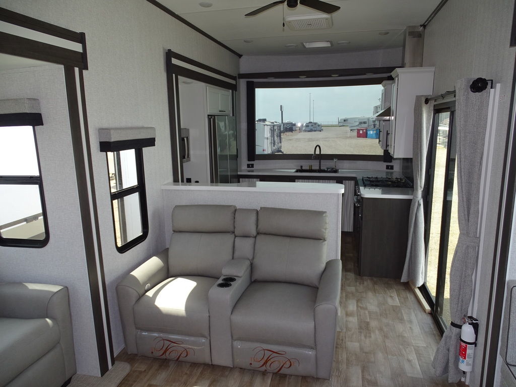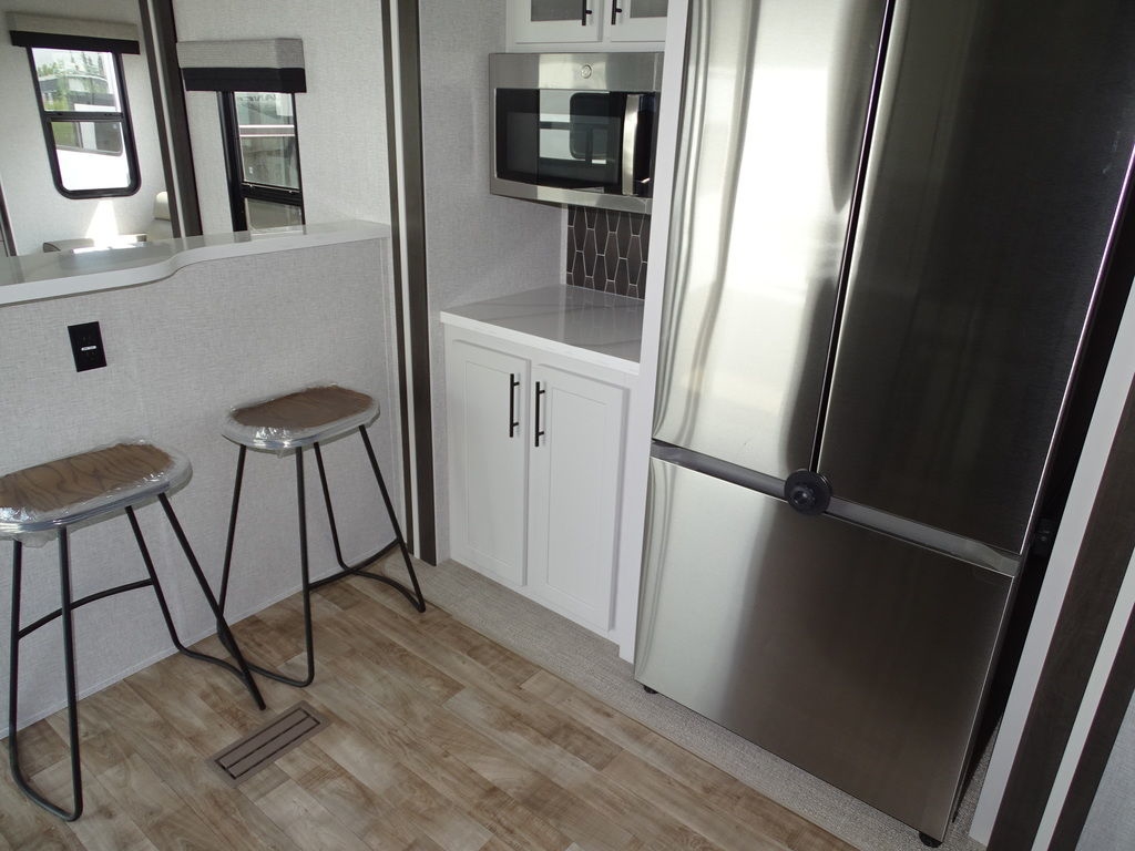 2025 CrossRoads RV Hampton HP388FKLLooking for an extended stay trailer, but don't want to sacrifice your creature comforts? Look no further than the Hampton by Crossroads. Hampton has been designed and engineered to feel like home. Rich stainless steel residential style appliances, 8- foot ceilings, hardwood raised panel cabinetry, and abundant storage await you in a Hampton. Wherever your adventure takes you the Hampton will allow you to make your home where you want it to be. Features may include:ExteriorOne Piece Fiberglass Front CapOutside FaucetOutside SpeakersPatio AwningTinted Glass WindowsWiFi PrepInteriorDeep Stainless Steel SinkFaucet w/ Pull-Out SprayerFreestanding Table & Chairs (VBM)Full Extension Ball Bearing Drawer GuidesInsignia Residential 4 Burner RangeRaised Panel Cabinet DoorsResidential Overhead Cabinets w/ LightingResidential RefrigeratorSolid Surface CountertopsStainless Steel Microwave7' Headroom in Slide-Outs8' Floor to Ceiling Height15,000 BTU A/CAM/FM/Bluetooth SoundbarDecorative Accent LightingExterior Cable w/ Satellite Hookup & BoosterInterior LED LightingLED HDTVLiving Area Tri-Fold Hide-a-Bed Sofa (VBM)Patio Door w/ Swing-Out Assist RailPowered Theater SeatingRoller BlindsThree Decor ChoicesTwo Toned Wood FasciaTV Antenna w/ Cable Output15,000 BTU A/C for BedroomCoordinated Window Treatments & BedspreadDeluxe ClosetKing Sized Residential Mattress (VBM)Living Room & Bedroom Ceiling Fan (VBM)TV Hook-Up Features Include 4 Slides 3 Ducted A/C's Power Awning On Demand Water Heater 18 Cu. Ft. Refrigerator Arctic Package Front Stabilizer Jacks Rear Stabilizer Jacks Microwave Home Theatre LED TV Ceiling Fan Fantastic Fan LED Lighting Roller Shades Solid-Surface Counter Tops Free Standing Dinette Theatre Seating Trifold Sofa Fireplace Weight 12,299 Lbs.