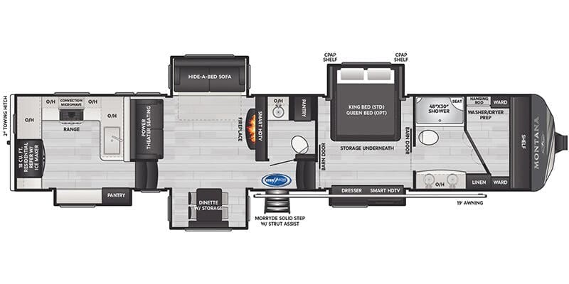 This 2025 Keystone Montana 3901RK fifth wheel for sale in Red Deer at Vellner Leisure Products welcomes luxury at its finest. It has all the bells and whistles to go with the amazing interior space. With 5 slide outs this luxury unit feels like home. The spacious rear kitchen gives a great view of the living room area. The front bedroom has a massive bathroom as well as a walk in closet. Perfect for the lake lot and has plenty of room for visitors. Prepped for washer/dryer…..this unit has it all. Please contact Vellner Leisure Products to inquire about this 2025 Keystone Montana 3901RK fifth wheel for sale in Red Deer.