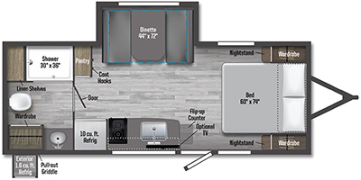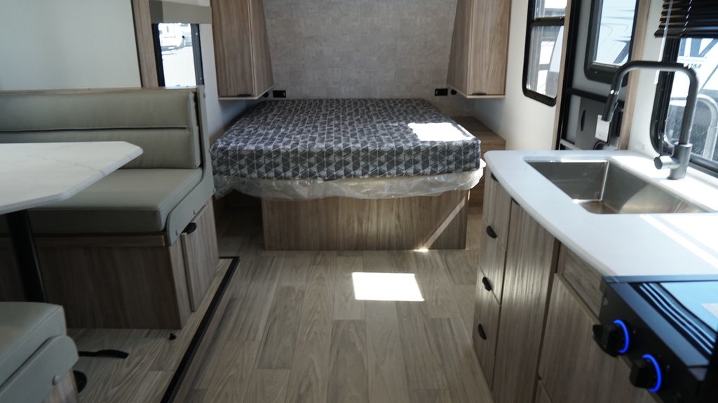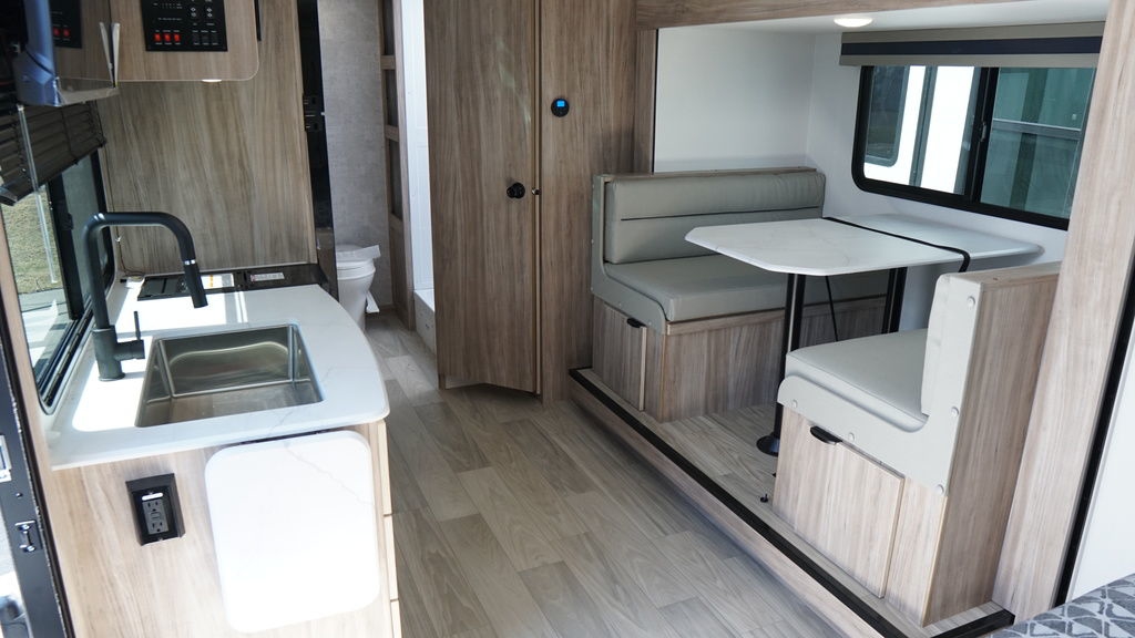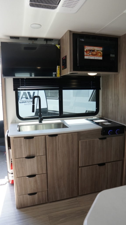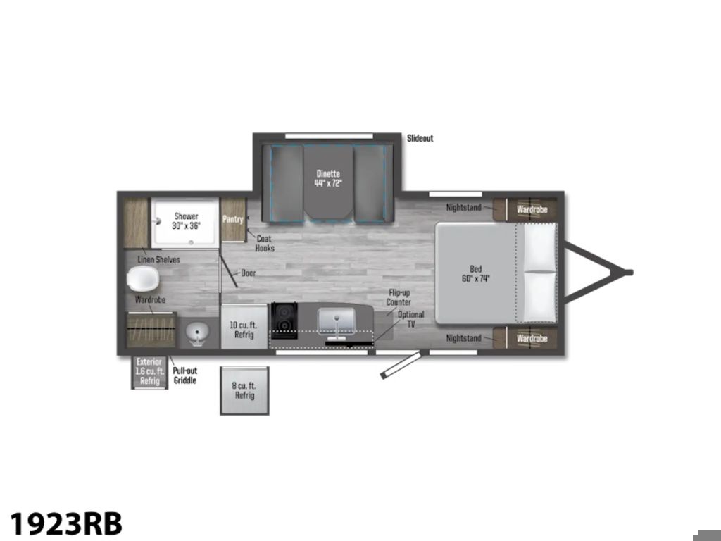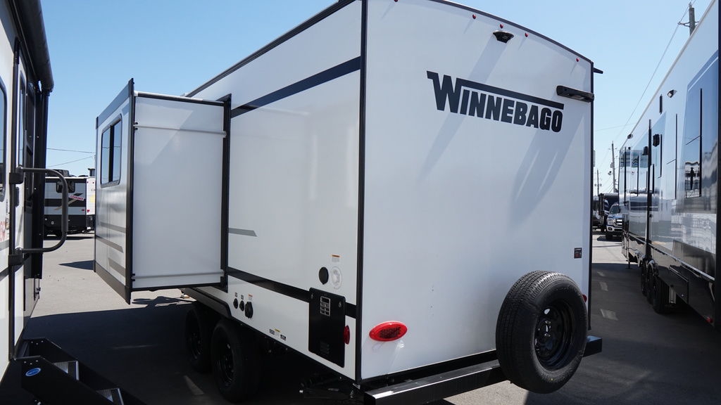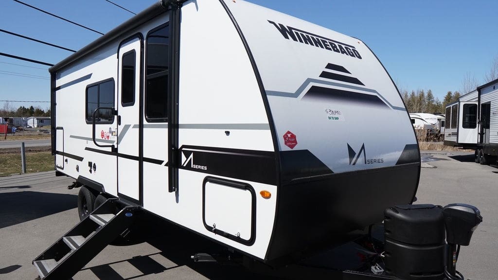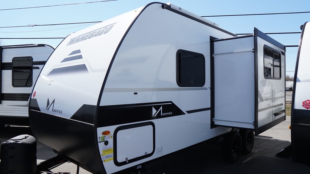 2025 Winnebago M-Series 1923RBThe M-Series is the perfect blend of practicality and style for those who value simplicity, functionality and comfort on their journeys—a budget-friendly, easy-to-tow travel trailer with all the essentials. Hitches easily to a small truck and puts exploring the great outdoors with all the comforts of home well within reach.The 1923RB M-Series floorplan is thoughtfully designed for comfort and convenience. You'll feel right at home with a cozy bed with nightstands, wardrobes, and underbed storage, a dinette that doubles as an extra sleeping area, and a spacious shower to refresh after a day of adventure. The kitchenette includes a 10 cu. ft. refrigerator, stainless steel sink, and pantry, while the bathroom and linen shelves provide ample storage for your essentials. Outdoors, a 1.6 cu. ft. fridge and pull-out griddle make al fresco dining a breeze.Features may include:ExteriorNXG engineered frame1.5" thick wallsPowered awning w/LED lightingLED lighting (break lights not integrated)Power tongue jackManual stabilization jacksWeather proof junction boxFully enclosed underbelly12-volt tank pad heatersOne-piece TPO roofFully walkable roofLadder prep7-way plug holderTriple solid entry stepSpray portFurrion Back-up camera prepFurrion side-mount camera prepInteriorFull overlay European style cabinetryFlip-up countertopSealed countertopsTinted windowsBlackout roller shades