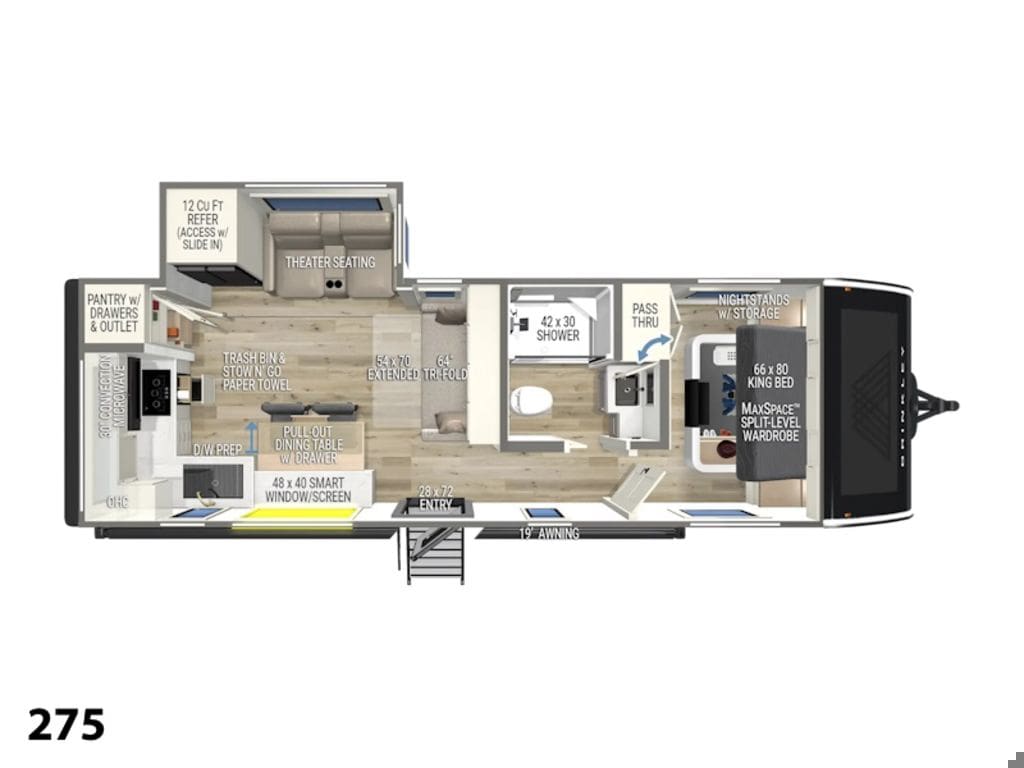 2025 Brinkley Model I 275This new line of travel trailers culminates decades of experience, exhaustive research & development, and invaluable feedback from customers + fellow RVers. The Model I line brings the Brinkley experience to customers with smaller tow vehicles, opening exciting new possibilities in the luxury lightweight market.Features may include:ExteriorEuramax StrongLite Laminated AluminiumAutomotive-Grade PaintUV Protected for a Lasting FinishSquare Euro Frameless Windows w/ 6" Openings (Industry 1st)Sleek & Clean Styling w/ Automotive-Grade Exterior GraphicsFront Neon LED Docking Lights76” x 45” Picture Perfect Front Window w/ Insulated Blackout Privacy ShadeExterior Rockford Fosgate Speakers w/ In-Frame Mounted Weather-Proof EnclosuresElectric Awning w/ LED LightingBackup/Security Furrion Camera PrepWinegard Air 360+ TV & FM Antenna w/ Wi-Fi Booster (Gateway Ready)InteriorBrinkley CraftSense™ Wood Trim ConstructionFlush Floor Stepless Slide-Out72.5" Slide Out HeightWindow Intergraded Day Screens & Blackout Shades w/ Reflective Insulation & Full Bug ScreensDimmable Living Room LightsSmart Projector w/ Pull-Down ScreenPremium Rockford Fosgate Sound System w/ Bluetooth w/ Physical ControlsSubwoofer Prep (Rockford Fosgate Plug 'n Play Sub/Amp Combo Available Aftermarket)62" Wall Hugger Theater Seating w/ 2 Recliners64" Trifold Sofa w/ Scotchgard Protection (54"x70" Sleeper)Well-Placed Outlets w/ USB & USB-C High-Speed Charging StationsWall Coat Hooks