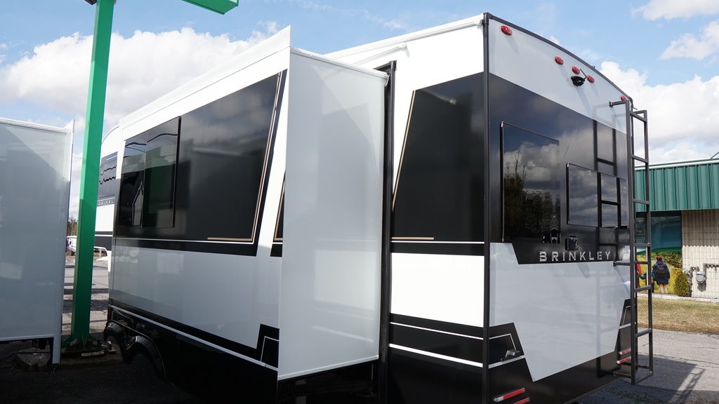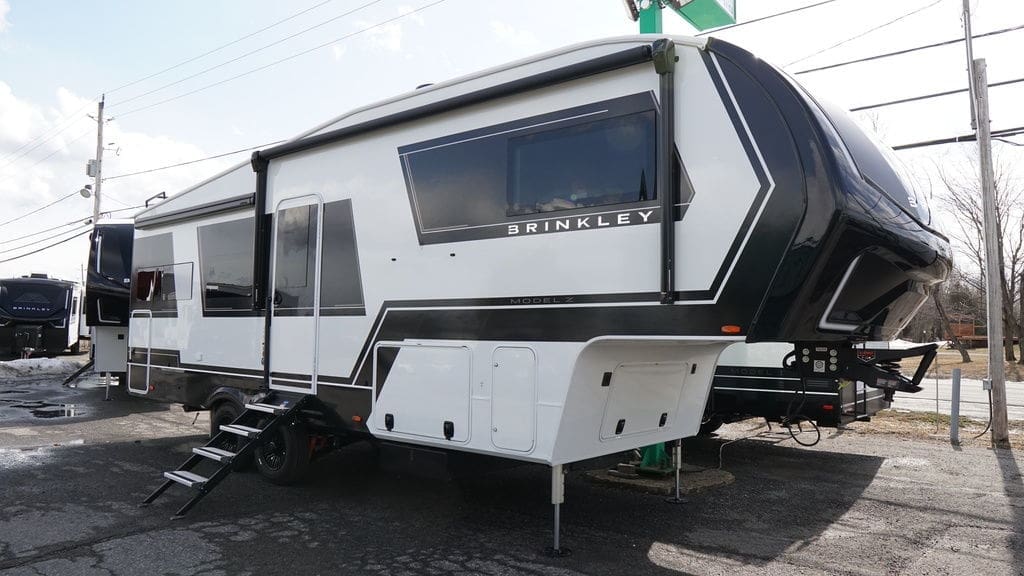 2025 Brinkley Model Z 2670Luxury Mid-Sized Fifth WheelsThe All-New Brinkley Model Z – Mid-Sized Luxury Fifth Wheel is in a class of its own… Featuring an automotive exterior with a residential interior, yielding NO COMPROMISE. It’s destined to change the RV ownership experience. Whether you’re a weekend camper or a full-time RVer, Model Z offers features and amenities that will appeal to all camping enthusiasts. From 7k axles, 17.5” H-rated Cooper tires, flush floor slides, and a class-leading 79.5'' bed & bath interior height, to name a few. The Model Z has a combination of high-end features unheard of on a Mid-Size Fifth Wheel.Residential Interior: Contemporary & RefinedAutomotive Exterior: Modern & Clean Styling & All-New WindowsMaximum Exterior Storage: Massive Passthrough & Rear Storage101+ Intelligent Features: Developed & Tested In The Real WorldFeatures may include:ExteriorSquare Euro Frameless Windows w/ 6" Openings (Industry 1st)Sleek & Clean Styling w/ Automotive-Grade Exterior GraphicsAutomotive Front Cap, Lights, & LensesRockford Fosgate Stereo w/ Bluetooth & App ControlExterior Campsite Tuned SpeakersElectric Awning(s) w/ Neon COB/Dotless LED LightingMotion Activated LED Scare LightBackup Camera & Wireless Monitor w/ Observation/Security ModeWinegard Air 360+ TV & FM Antenna w/ Wi-Fi BoosterOversized Front Storage Compartment (Wide-Stance Jacks)Mid-Coach Pass-Through Storage Compartment w/ Motion Lighting & Power Outlets Storage Compartment (Heated & Insulated)Rear Storage Compartment w/ Motion Lighting & Power Outlets (Heated & Insulated)Tough-Ply Floor & Walls in Storage CompartmentsBrinkley KeBloc Accessory Mounting System Prep w/ 2 BlocksPet & Property Security Campside Tie-DownSlam Latch Baggage DoorsHeavy-Duty Ladder w/ Secure-Transition & Weep HolesPortable 14.5’ Telescoping Ladder w/ Dedicated Storage CompartmentInteriorBrinkley CraftSense™ Wood Trim Construction76" Kitchen & Dinette/Livingroom Slide-Out HeightIntegrated Window Screens & Insulated Blackout BlindsDimmable Living Room LightsFlush Floor Main Slide-OutFloating Entrance Steps w/ Indirect Lighting & Double Deep Shoe Storage50" Smart TV w/ Articulating MountEntertainment Shelf (Behind TV)Premium Audio System w/ Bluetooth & Controls in Cabinet Below TVSubwoofer Prep (Rockford Fosgate Plug 'n Play Sub/Amp Combo Available Aftermarket)Wall Hugger Theater Seating w/ Heat & Wireless Charging (2x Recliners)