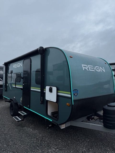 The 2025 Keystone Reign 18RB is a compact, single-axle travel trailer designed for couples seeking a balance of comfort and ruggedness.
