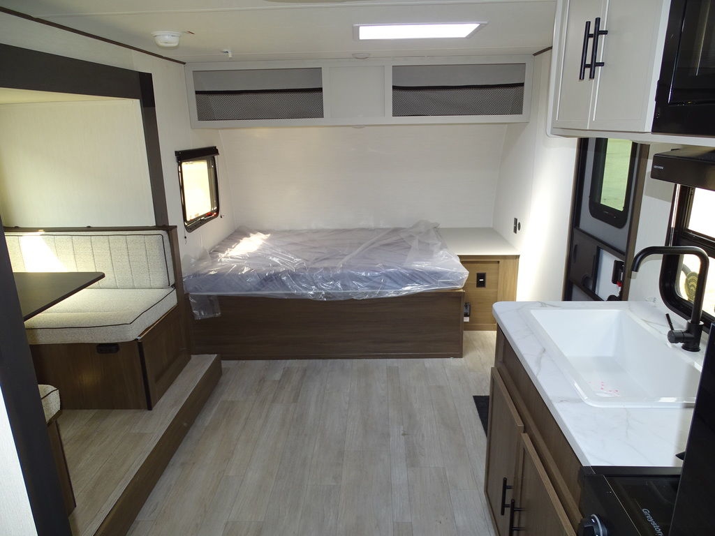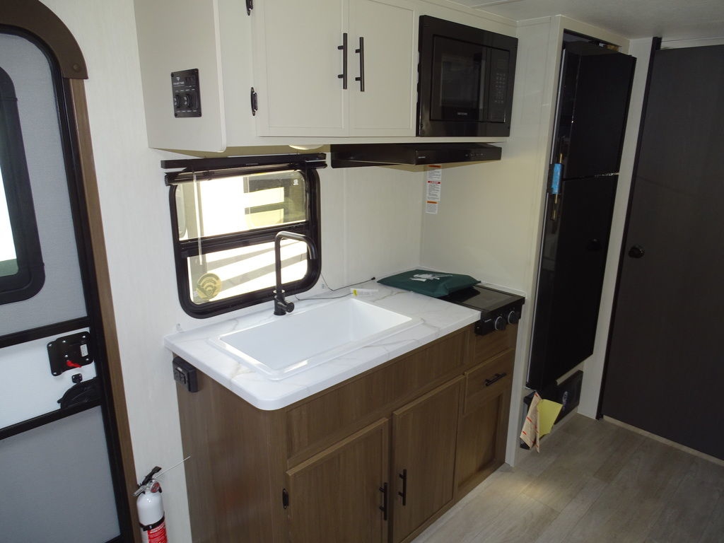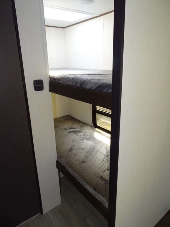 Features Include 1 Slide A/C Power Awning On Demand Water Heater 8 Cu. Ft. Refrigerator Enclosed Tanks Bunks Power Front Tongue Jack Rear Stabilizer Jacks Diamond Plate Rock Guard Microwave LED Lighting Pleated Shades Outside Shower Solar Panel Portable Kit Weight 4126