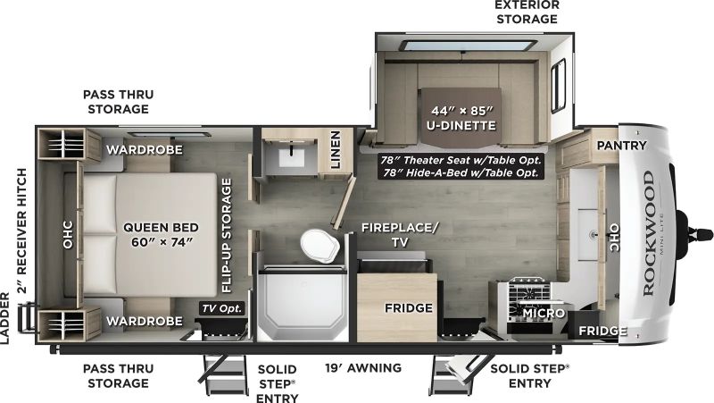 Rockwood trailers from Forest River. the best-selling brand worldwide have a wide range of models to fulfill all your camping needs. They are solidly built. light weight. and offer all sizes with a modern decor. Full of commodities and offering many different floor plans to satisfy any family or couple looking to experience camping with comfort and style. *The unit might be different from the options / picture(s) / 360 video illustrated