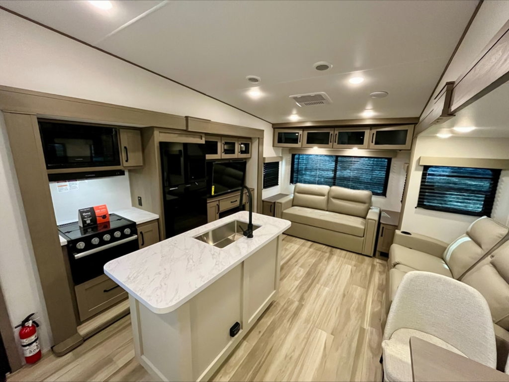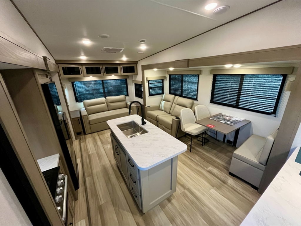 PEACE OF MIND PKGULTIMATE POWER PKGDEEP SEASON PROTECTION PKGSOLAR PKGGOODYEAR TIRESABS AXLE ASSEMBLY W/SWAY CONTROLSRASWIVEL DINETTE W/2CHAIRS & STORAGE OTTOMANRVIA SEALDPU