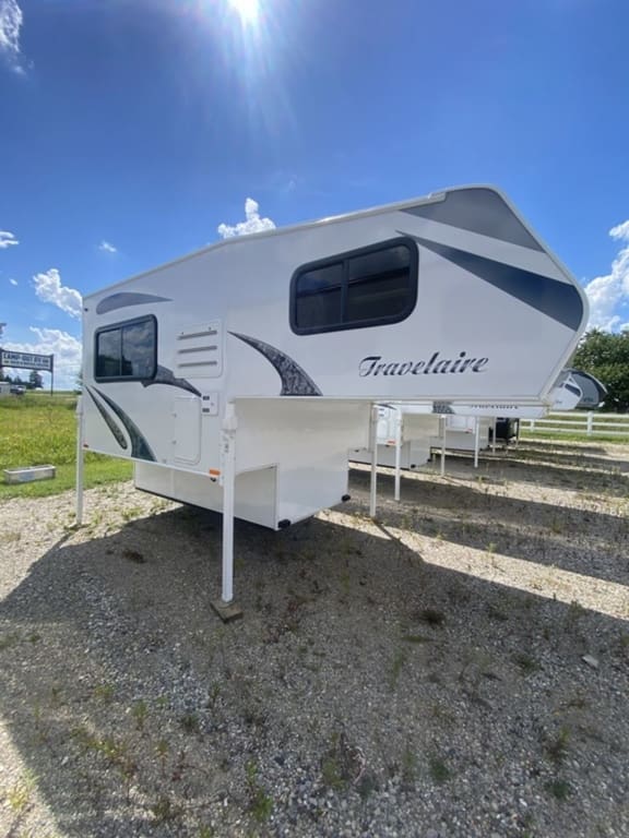 2026 TravelAire 80WS Truck Camper SALE PRICE – $49,990.00 Weighs approx 2000LBS. 33" center of gravity. Well equipped including: -rear awning -fantastik fan -Happijac remote controlled power jacks -outside shower -roof mounted 2 x 185W solar panels with charge controller (Total of 370W) -roof mounted AC -5 cu ft Fridge -LARGE skylite -entry steps and MUCH MORE. MADE IN CANADA!